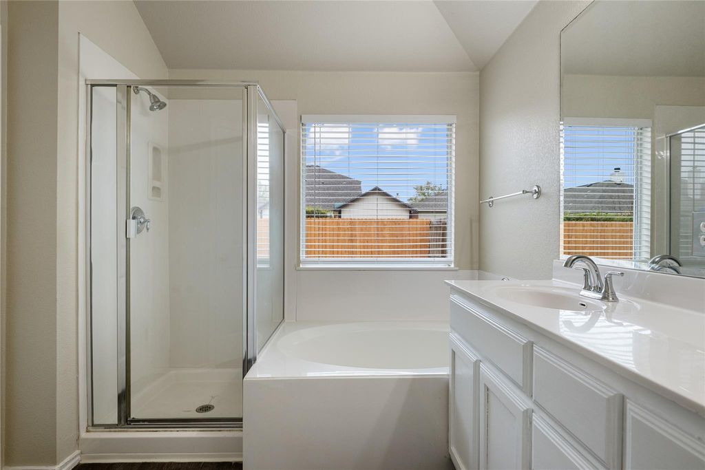 Beautiful, Contemporary 3 bd, 2 ba home. Open floor plan with a spacious living area and kitchen. Abundant cabinet storage, pantry and very nicely sized island to give you even more counter space! You'll love the high ceiling, very comfortable bedrooms and ceiling fans throughout, The Primary bedroom enjoys a good sized walk in closet as well as an en suite bathroom with a great garden bathtub and seperate shower, side by side. The entire home is bathed in a lot of natural light and vinyl plank , wood like flooring throughout. Perfect sized fenced backyard with a small covered patio to entertain and enjoy. Very convienent to the 45 and 130 Tollway! Great location!