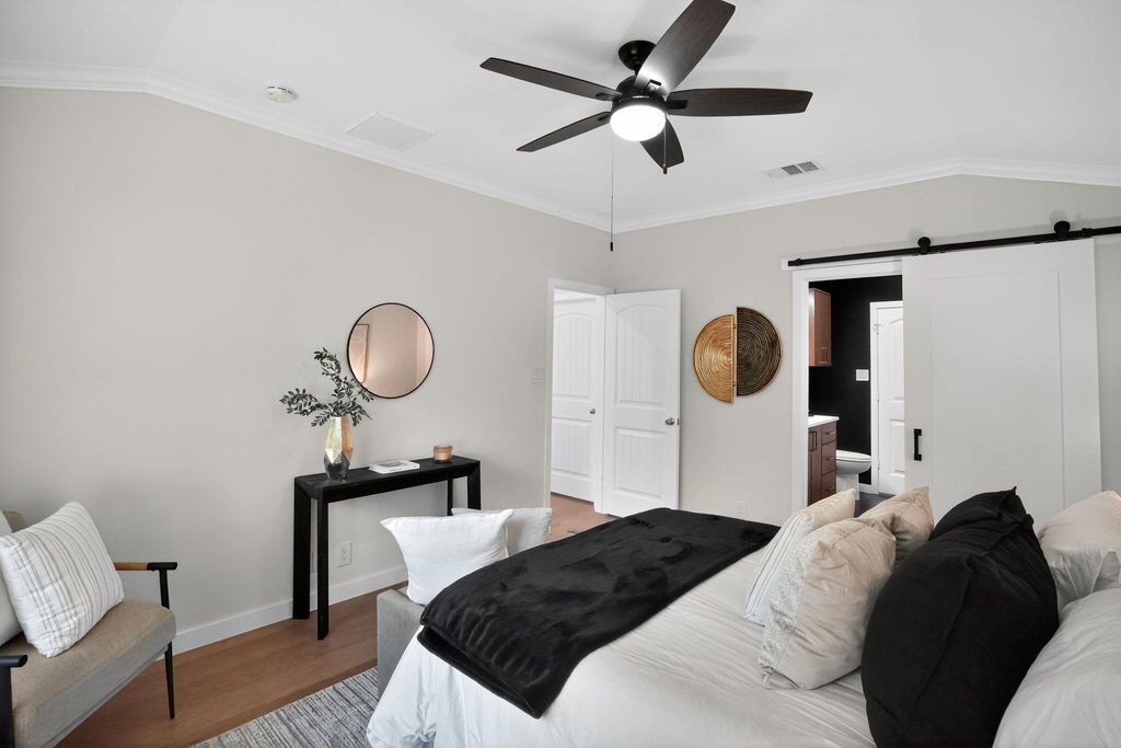 Step into this fully renovated, move-in-ready home, where modern design meets everyday comfort. This tastefully updated home features White Oak engineered flooring, recessed lighting, and fresh paint. Living, dining, and kitchen areas flow seamlessly in the open floor plan, while the private owner's suite is tucked away for peace and quiet. Recent upgrades, including a new HVAC system, roof, and fence, make this home truly turnkey. The kitchen and primary suite shine. The kitchen boasts BLUM soft-close cabinetry, 42" uppers, lower drawers, quartz countertops, a striking backsplash, a deep single-basin sink, and stainless-steel appliances, including range, vent hood, French door refrigerator, and dishwasher, that all convey. The primary suite includes a large walk-in closet and spa-like bath with White Oak cabinetry, quartz counters, a glass-enclosed shower, and a versatile flex space. The guest bath is updated with quartz counters, modern cabinetry, and stylish tile. Laundry and outdoor living are equally convenient. The dedicated laundry room features soft-close cabinetry and includes a front-load washer/dryer. Step outside to a private backyard backing to green space, no rear neighbors, and enjoy a full irrigation system that keeps yard work low-maintenance. All this in a prime location near Southpark Meadows, Menchaca dining and nightlife, grocery stores, and major highways.