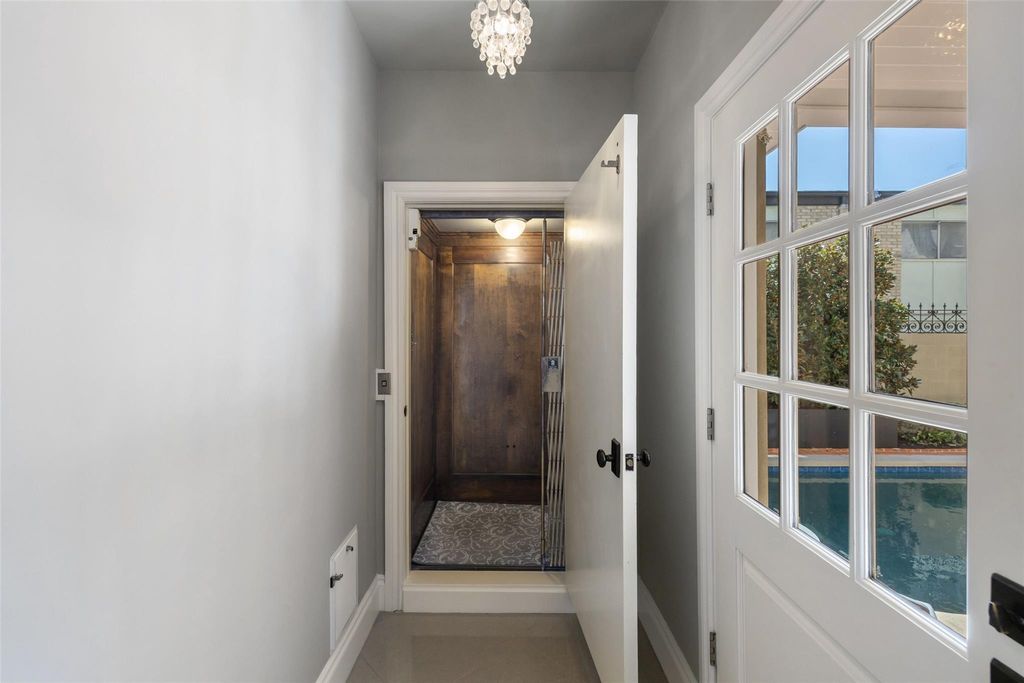 A Hidden Sanctuary and Architectural Gem with Old World Soul offering Downtown Panoramic Views in Oakmont Heights! Set back from W 35th Street with privacy seldom found in Austin's urban core, yet easily accessible to everything. For sophisticated urban living wrapped in tranquil luxury, step inside to rich walnut floors, French wood paneling, and a stunning Labradorite fireplace speaking to Old World craftsmanship. The imported leaded glass window catches Texas sun perfectly, sending prismatic rainbows dancing across crown-molded ceilings; a daily magical light show. Sea Glass stone counters accent the chef's kitchen showcasing Viking appliances, custom cabinets, and show-stopping Artistic Estrella glass mosaic backsplash. Original arched doors open to the private courtyard pool with hand-laid brick decking while Sonos sound sets the perfect mood. A vintage accordion elevator gracefully lifts you to each level accessing rooftop decks and guest quarters with panoramic downtown views, cedar sauna, full bath, walk-in closet, abundant built-ins, and walnut floors. Ideal for home office, artist's retreat, wellness studio, home gym, or multi-generational living quarters. The primary suite's marble bathroom features a luxurious 7-foot Jacuzzi with custom glass transom, dual vanities, and separate frameless shower. The spacious dual-entry closet includes center island, stackable washer/dryer, and charming Juliet balcony. Wraparound verandas and 2 Ipe rooftop decks provide front-row seats to Austin's famous sunrises, sunsets, and annual fireworks. Alley-accessed 2-car garage plus 3 front parking spaces ensures convenience. Unbeatable location: minutes to parks, lakes, trails, shopping, dining, medical facilities, entertainment venues, and downtown Austin. Excellent public school zone with proximity to top private schools. LR zoning potential allows chic professional office, intimate art gallery, luxury wellness spa, boutique hospitality retreat, or other commercial uses.