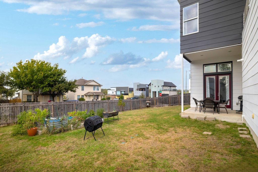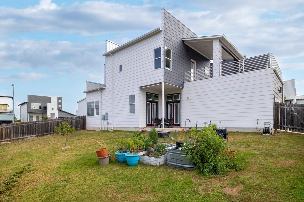 Welcome to Austin's coveted Agave community known for modern architecture and exciting streetscapes. This fully loaded house is full of natural light and features an open floor plan, 12 ft ceilings, and huge windows. It is immaculate and very well cared for...including brand new exterior paint. The modern kitchen has quartz countertops, huge island, a giant walk-in pantry, Bosch appliances including gas cooktop, electric wall oven, microwave, dishwasher, etc. The upstairs primary suite features a bright ensuite bathroom with huge walk-in shower, separate soaking tub, dual vanities and more. The primary bedroom also has TWO large walk-in closets! Also upstairs is a secondary bedroom and full bathroom. Downstairs, there is another bedroom with a full bathroom. French doors lead out to a covered back patio and one of the largest fenced yards in the community. A two car garage is accessed from the rear alley. Energy efficient home also includes a 16 SEER AC, 6" exterior walls, a tankless water heater, car charger, security system, automatic sprinkler system, full gutters and smart home system. This house includes several outdoor covered decks and patios. You will surely enjoy the panoramic sunset view including downtown Austin from an amazing covered roof deck. Situated adjacent to 183, 290, and 130 tollway, Agave is located just 8 miles from UT, 20 minutes to downtown, the airport, Domain and more.