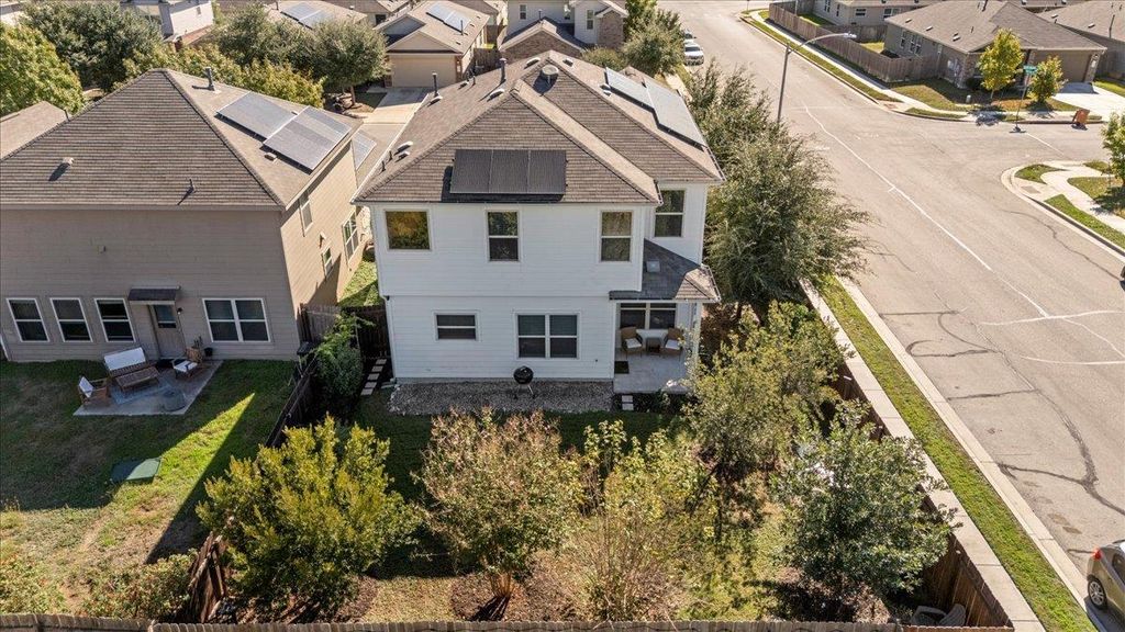 Stunning home in a prime location with no carpet! Set on a premium corner lot in South Austin's highly sought-after Colorado Crossing community, this meticulously maintained home offers exceptional convenience and everyday comfort. Just minutes from the natural beauty of McKinney Falls State Park, it also sits within close proximity to downtown Austin, local colleges, Austin Bergstrom International Airport, and popular hotspots such as Radio East and Meanwhile Brewing"”with a new H-E-B on the way. Commuting is effortless with quick access to HWY 183, SH-71, and I-35. Enhancing its value and efficiency, the home includes leased solar panels that significantly reduce monthly energy costs. Mature trees and easy-care landscaping add welcoming curb appeal as you arrive. Inside, an airy open floor plan is filled with natural light, creating a seamless flow between the living area and the spacious kitchen. The kitchen features granite countertops, an island with bar seating, dark-stained cabinetry with pull-out drawers, sleek black appliances, and a generous pantry. A downstairs bedroom paired with a full bath provides the perfect retreat for guests. Upstairs, the primary suite offers comfort and privacy with an en-suite bath that includes a dual vanity, soaking tub, separate shower, and a walk-in closet. A versatile flex space awaits your personal touch"”perfect as a home office, game room, or fitness area"”while two additional bedrooms with ample closets share a full bath. Step outside to a generous, fenced backyard highlighted by a covered patio and a backdrop of several trees"”perfect for outdoor entertaining or relaxing in your own private oasis. Residents of Colorado Crossing enjoy outstanding community amenities including a nearby pool, disc golf course, multiple playgrounds, a scenic pond, walking trails, and a soccer field. This home combines an ideal location, thoughtful upgrades, and exceptional neighborhood features.