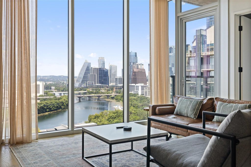 Introducing Unit 2201 at Natiivo Austin"”a stunning 2-bedroom, 2-bathroom corner residence located on the 22nd floor in the heart of the highly sought-after Rainey Street Historic District. With western-facing exposure, this home offers breathtaking, unobstructed views of Lady Bird Lake and the Austin skyline through expansive floor-to-ceiling windows. A spacious wraparound terrace invites you to enjoy peaceful mornings with coffee, sunset cocktails, or fireworks over the water. Inside, the open-concept layout features a sleek, modern kitchen outfitted with stainless steel appliances and rich dark wood cabinetry. The kitchen flows effortlessly into a bright, airy living and dining area filled with natural light. Both bedrooms are generously sized, each with large windows that showcase the vibrant city below. The primary suite includes a walk-in closet and a spa-inspired en suite bathroom complete with sophisticated black finishes and a walk-in shower. Offered fully furnished, this turn-key residence is ideal as a full-time home, a weekend retreat, or an income-producing investment. Natiivo Austin's innovative ownership model supports short-term rentals with full-service management, allowing owners to enjoy the flexibility of hotel-style living with the benefits of a private residence. Life at Natiivo Austin means access to an incredible collection of amenities, including a rooftop pool and lounge with panoramic views, a 33rd-floor owner's clubhouse, a fully equipped fitness center with a Peloton studio, a serene yoga space, a stylish lobby coffee bar, and thoughtful conveniences like bike storage, a dog park, pet washing station, 24-hour concierge, and valet services. Located just steps from the energy of Rainey Street, downtown Austin, and the Lady Bird Lake Hike and Bike Trail, Unit 2201 offers a rare opportunity to live in one of the city's most dynamic neighborhoods while enjoying the comfort and convenience of full-service luxury living.