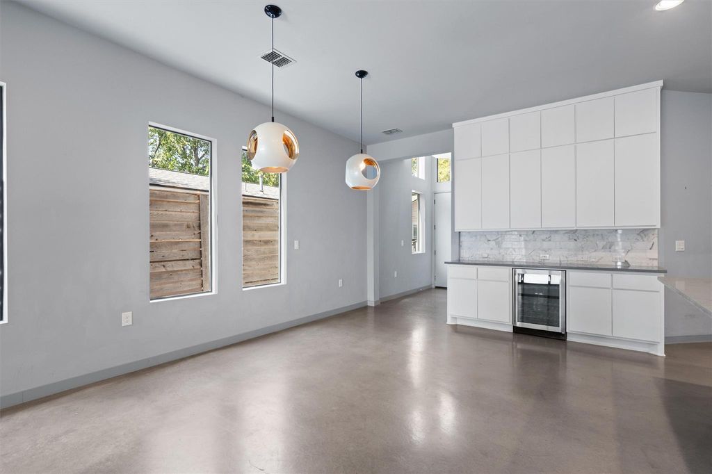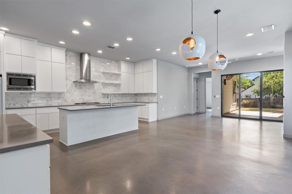New in Crestview! This contemporary home has an open-concept layout, soaring 10' ceilings, and 8' doors throughout. Large windows and designer lighting fill the home with natural light and warmth. The entertainer's dream kitchen features custom cabinetry, a white Calacatta marble backsplash, Bosch stainless steel appliances, gas cooktop and built-in oven, a built-in wine fridge and a huge island with quartz countertops. A ventless gas fireplace anchors the spacious living area, complemented by eco-friendly concrete floors on the main level and natural White Pine hardwoods upstairs. The upstairs primary suite includes dual vanities, 2 separate walk-in closets, and a private covered terrace"”perfect for morning coffee or evening relaxation. Additional home features include a bonus living space on the 2nd level, an upstairs laundry and a mudroom right off the oversized one car garage. Enjoy outdoor living on the covered patio overlooking the expansive yard with modern. There is even room for a pool! Located just minutes from the Crestview MetroRail station and the bustling Burnet Road corridor, this home puts you in the heart of one of North Central Austin's most dynamic districts. The Crestview area hosts tons of local favorites, boutique retail & service shops. Several nearby options for foodies. Don't miss this gem!