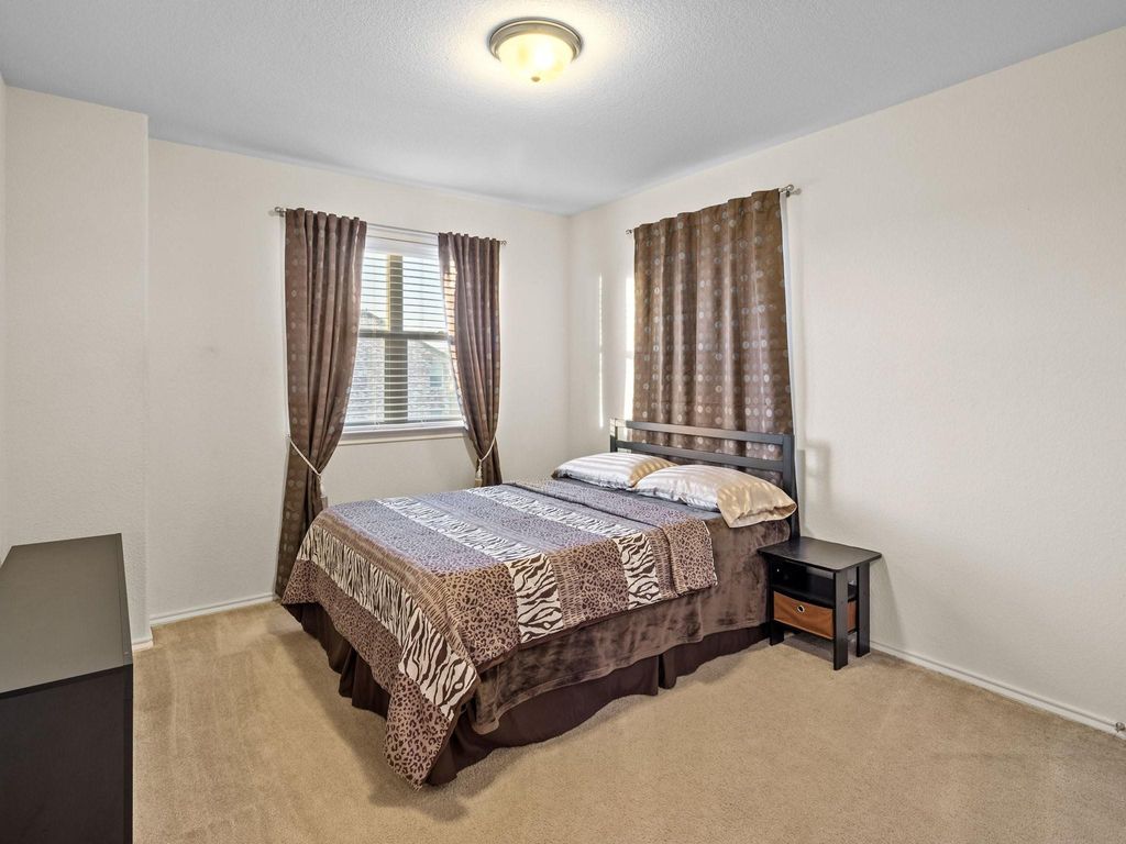 Step through the inviting threshold of this picturesque two-story residence, and instantly feel enveloped in comfort. Thoughtfully enhanced with a new security storm door in the front, this home reveals a seamless floor plan boasting 3 bedrooms, 2.5 bathrooms, and plenty of space for entertaining guests. The main floor exudes an aura of warmth and sophistication, illuminated by natural light filtering through expansive windows. The living room, with its airy layout and contemporary décor, serves as a versatile hub for relaxation and socializing. Bathed in natural light, it offers a serene retreat where memories are made and shared amidst the comfort of home. Efficiently designed and adorned with modern amenities, the kitchen is a culinary haven for both novice cooks and seasoned chefs. Its granite countertops, complimented by a tiled backsplash and abundant cabinetry, provide ample workspace and storage, while a new garbage disposal ensures seamless functionality. Comfort continues upstairs, where ceiling fans have been added to each bedroom, enhancing the tranquil retreat that awaits. The primary suite offers a serene atmosphere complete with an ensuite bathroom, perfect for unwinding after a long day. Recent upgrades extend beyond the interiors. A brand-new AC compressor enhances efficiency, while a freshly painted fence frames the property with a crisp finish. Outdoors, a new screen door at the back leads you to an expansive yard designed for enjoyment. A new covered patio provides the perfect setting for alfresco dining, summer barbecues, or quiet evenings beneath the stars. Conveniently situated within a friendly neighborhood, this home offers easy access to I-35, Tech Ridge shops, and The Domain, blending suburban serenity with urban convenience. Schedule your visit today and experience the thoughtful updates and inviting lifestyle that await in this delightful residence.