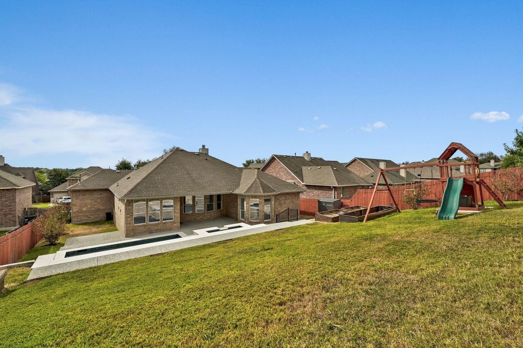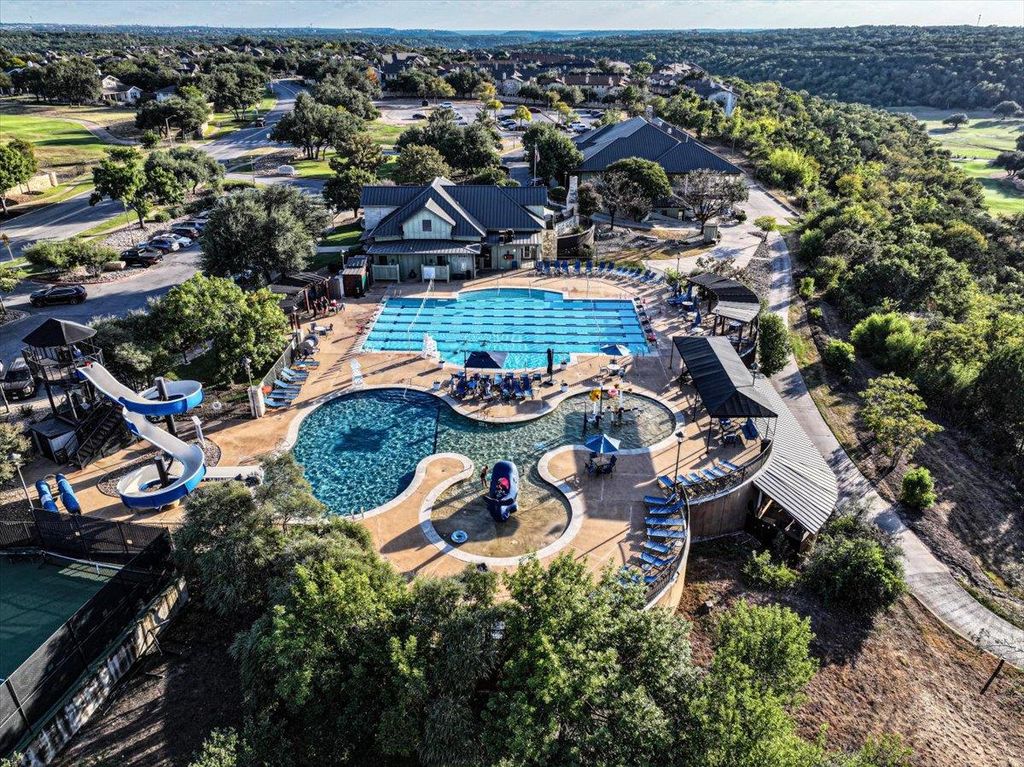 Experience comfort, style and smart living at 2411 Guara Drive in the heart of Cedar Park. This spacious home features modern upgrades, open living areas, and a private backyard retreat perfect for entertaining or relaxing. Inside, soaring ceilings and oversized windows fill the home with natural light. The living room offers a warm and inviting atmosphere with a cozy fireplace at its center. The kitchen is both stylish and functional, featuring stone countertops, a contemporary backsplash, a large island, and a breakfast bar for additional workspace. A sleek stovetop completes the space, ready for everyday meals or special gatherings. The primary bathroom includes a double vanity and a tiled walk-in shower. Additional highlights include a generous walk-in closet, a dedicated laundry room, and a three-car garage offering plenty of storage. Step outside to your private backyard escape with an app-controlled heated pool and hot tub with two beautiful waterfall features. The outdoor area features a covered patio with electrical outlets, additional patio space for dining or lounging, and large garden planters. A French drain system supports effective yard drainage. Key updates include a 2021 HVAC system, water heater, and a comprehensive smart security system"”all easily managed via mobile app. Community amenities include a neighborhood pool with a water slide and a nearby park. The home's east-to-west orientation offers beautiful sunrises and sunsets. Conveniently located near top-rated schools, shopping, and dining, this home offers a perfect blend of comfort, convenience, and modern living.