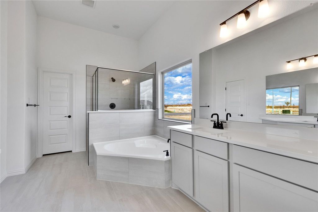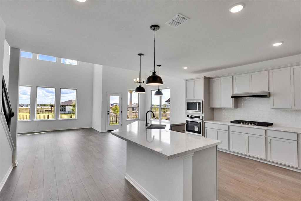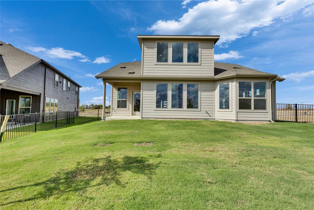 The only community within walking distance to Lake Pflugerville and easy access to 130. Stylish 2-Story Magnolia Plan in Pflugerville. Discover timeless comfort and smart design in this beautifully appointed 4-bedroom, 3-bathroom Magnolia floor plan in Pflugerville. This two-story home offers an ideal blend of elegance and functionality, starting with 8-foot ceilings at the entry and family room that create a welcoming sense of space. The gourmet kitchen features a 36" cooktop with vent hood, quartz countertops, light gray shaker-style cabinets with hardware, a stainless steel single-bowl sink, and three pendant lights over the island"”perfect for meal prep and entertaining. Enjoy Level 2 Revwood plank flooring in the main areas for a sleek, durable finish. Upstairs, you'll find a thoughtful layout including a shared bathroom with dual vanities and private bedroom access"”perfect for siblings or guests. The bay window in the primary suite adds charm and natural light, while the gas drop at the patio, full gutters, and pre-plumb loop for a future water softener provide practical convenience. Contact us today to tour this stunning home before it's gone!