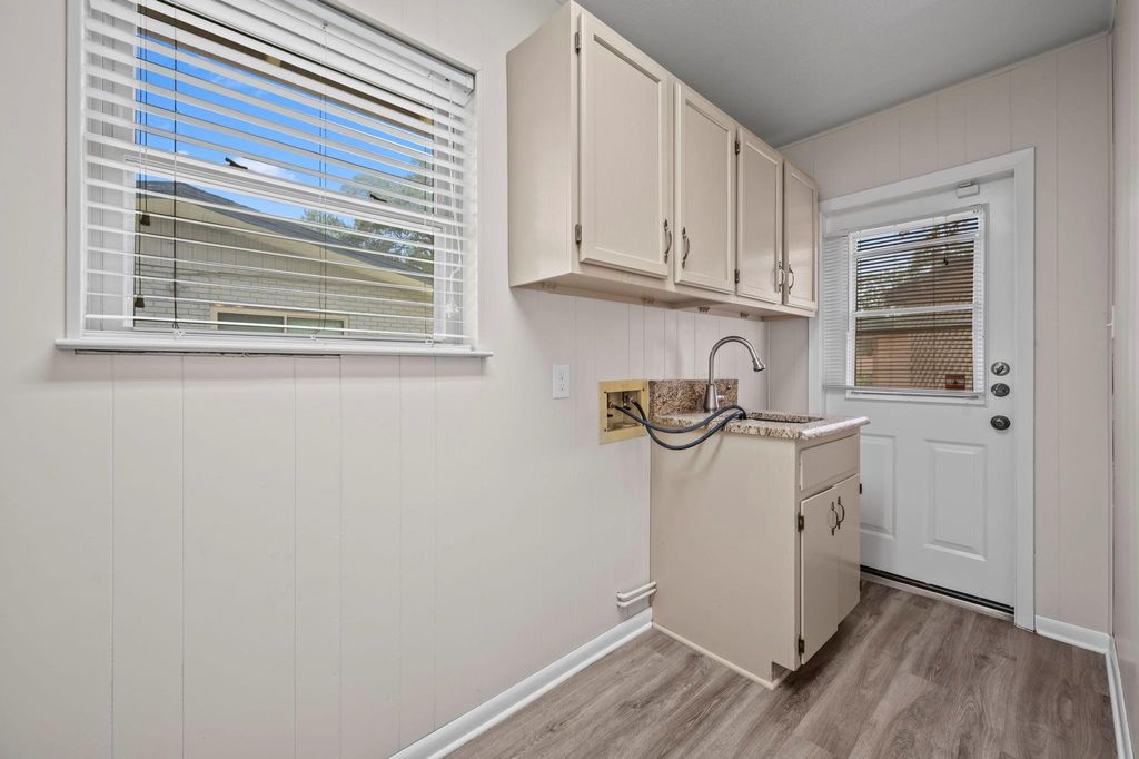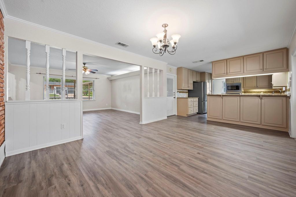 This 1957 ranch-style home is well located in the North Austin neighborhood of North Oaks. The meticulously cared for home was thoughtfully updated in 2021 and offers an open floor plan, where the living room and kitchen merge to create a spacious and inviting area; crown molding adds a touch of elegance to the living room, completing a picture of refined comfort. The kitchen boast ample storage, a breakfast bar, granite countertops and stainless-steel appliances, offering a functional and stylish culinary space. The primary bedroom provides a private retreat, featuring an ensuite bathroom that adds convenience and privacy. The designated laundry room includes a sink and additional storage, simplifying household chores. A carport offers shade and cover from the elements and the two-car garage provides additional parking and storage. The real gem is the oversized private backyard which offers over 500sf of covered patio space ready for relaxation, entertaining and recreation. The ~250sf shop and attached patio, complete with plumbing and electricity hookups, offers endless possibilities. Use it as storage or a shop for your projects, or turn it into additional square footage as a home office or secondary dwelling unit! A privacy fence has been installed to complete the serenity of this backyard oasis, ready for your final touches! This perfectly charming home is ready to welcome its fortunate new owners!