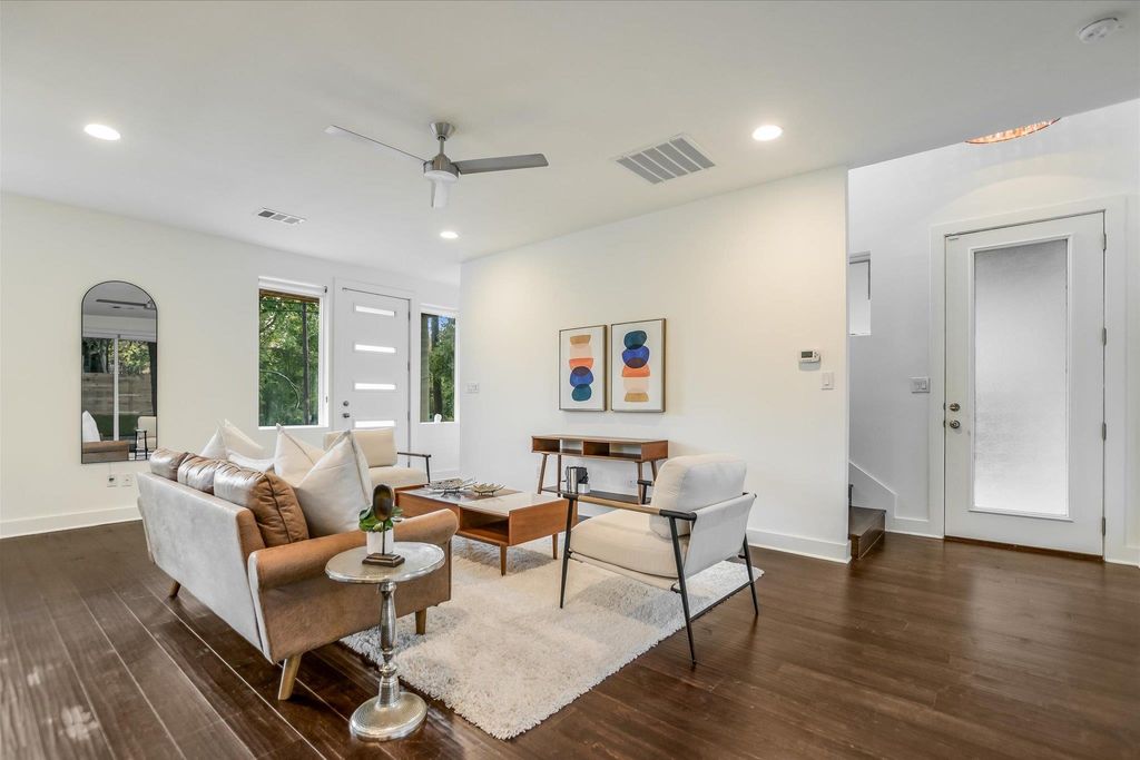 Experience the best of East Austin living in this contemporary three-story home, thoughtfully designed for refined comfort and effortless connection. With its modern layout, abundant natural light, and multiple balconies, this residence offers a sense of openness and sophistication at every turn. The first floor sets the tone with an inviting open-concept design. The galley-style kitchen, complete with stainless steel appliances and granite countertops, flows seamlessly into bright living and dining areas with direct access to the office/flex space. On the second level, a versatile landing offers a cozy sitting or reading area, while two bedrooms share a full bath. A spacious balcony extends your living outdoors"”perfect for morning coffee, intimate dinners, or entertaining under the stars. The "crow's nest" primary suite feels like a private retreat all its own. Featuring two walk-in closets, a double vanity bath, a cozy reading nook, and a private balcony with downtown views, it's the ideal place to unwind and recharge. Warm wood floors add modern texture and timeless durability throughout. With thoughtful, versatile spaces"”including the office/flex room"”this home adapts beautifully to your lifestyle. Whether hosting friends, working from home, or savoring skyline views, this residence delivers the perfect blend of sophistication and vibrancy in the heart of Austin.