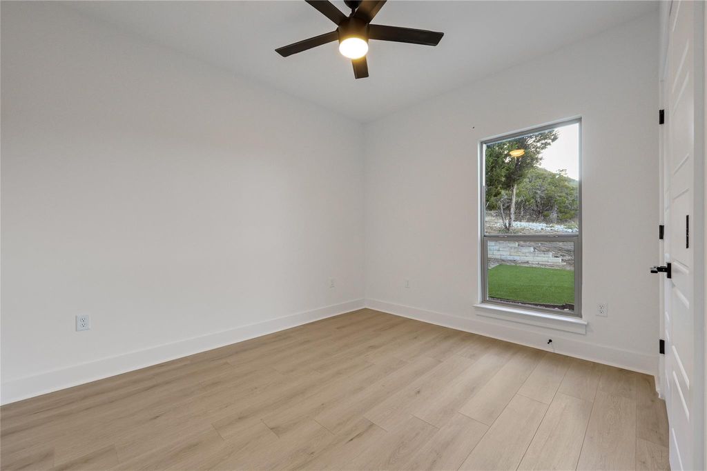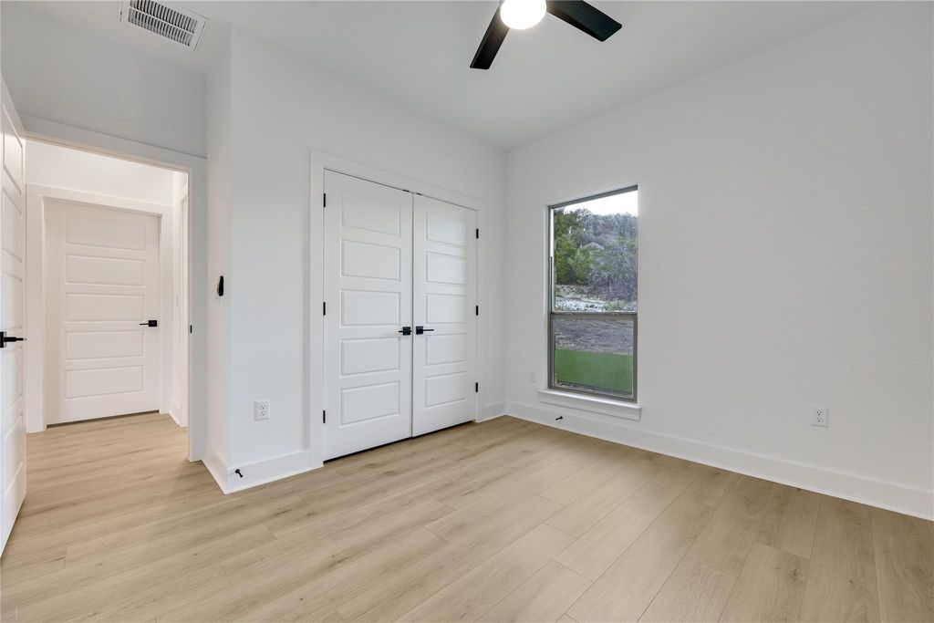 Modern mid-century living in the Texas Hill Country! 8631 Big Horn Circle offers a bright and open layout designed for comfortable living and effortless entertaining. The spacious living room is filled with natural light and features high ceilings, recessed lighting and ceiling fans, and flows seamlessly into the dining area and modern kitchen. Sleek countertops, abundant cabinetry, stainless steel appliances, and a large center island with seating make the kitchen perfect for any gathering. The private primary suite features a spa-like ensuite bathroom: dual vanity, large walk-in shower, soaking tub, and large closet. Additional bedrooms provide flexibility for family, guests, a home office or gym and share the second full bath. Step out back to enjoy the covered and uncovered patios. The fire pit is ideal for cool evenings and entertaining. (Who wants a s'more?) The Lago Vista Property Owner's Association membership unlocks private Lake Travis access and resort-style amenities, including lake access in multiple private parks, a pool, fitness center, fishing well, tennis and pickleball courts, picnic pavilions, trails, a campground, and more. Located ~30 minutes to Cedar Park, 40 minutes to Marble Falls, and under 1 hour to downtown Austin, but there are plenty of options for shopping and dining right in Lago Vista.
