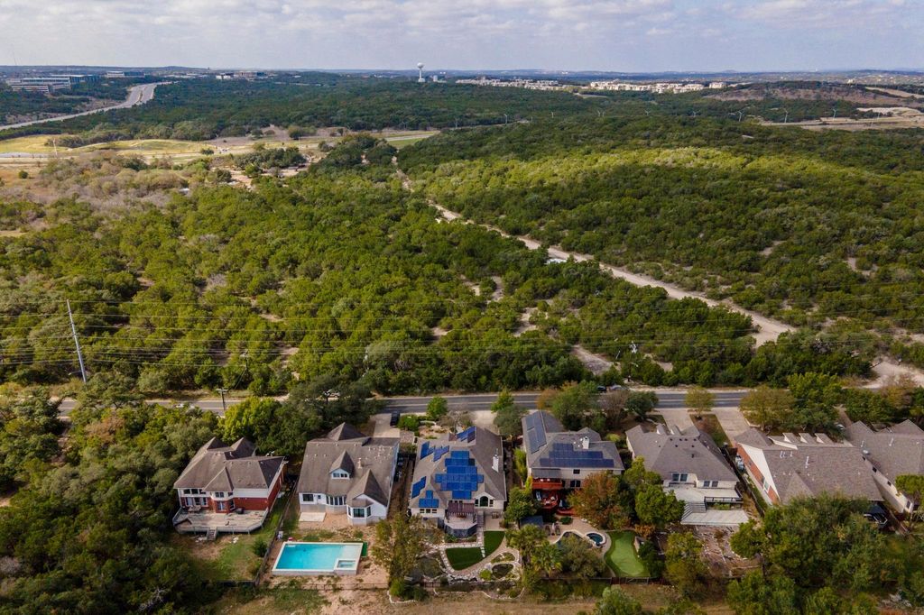 Welcome to your private oasis on one of the most desirable greenbelt lots in the area. Nestled against 30 acres of protected wooded greenbelt in the back and forested acreage in the front, this rare one-story retreat offers the tranquility of country living with the convenience of being just minutes from premier shopping, dining, and everyday essentials. Residents also enjoy access to exceptional Travis County amenities, including pools, bike paths, and miles of scenic hiking trails. Lovingly maintained by the original owners, this home has been thoughtfully upgraded throughout. Premium improvements include Pella Architectural Series windows, 62 solar panels, a 4-year-old roof, new HVAC (2023), automatic window blinds, fresh interior paint (2024), wood flooring, and double Jenn-Air ovens"”all of which add comfort and efficiency. Wake up to incredible sunrises from the primary suite, where expansive windows frame the beautifully designed backyard"”an outdoor sanctuary featuring two ponds, a flowing stream, lush landscaping, and drip irrigation. The spa-inspired primary bath offers dual vanities, a walk-in shower, a soaking tub, and a large walk-in closet. The spacious, open-concept living and dining area is ideal for entertaining, featuring a stone fireplace, east-facing windows, a breakfast bar that seats 4, a breakfast area, and a dining room that easily accommodates 10+ guests. Flexible living continues with a dedicated home office off the foyer (optional 4th bedroom), plus two additional well-appointed bedrooms. Gardeners will appreciate the Canadian Cedar greenhouse, perfect for year-round planting, along with eight rainwater tanks"”including four 500-gallon and five 300-gallon tanks"”that provide abundant water for sustainable gardening and landscaping. Enjoy resort-style living on a single level, just a quarter mile from Regents and St. Andrew's schools, and surrounded by nature, privacy, and an exceptional sense of peace. This is truly a one-of-a-kind property.