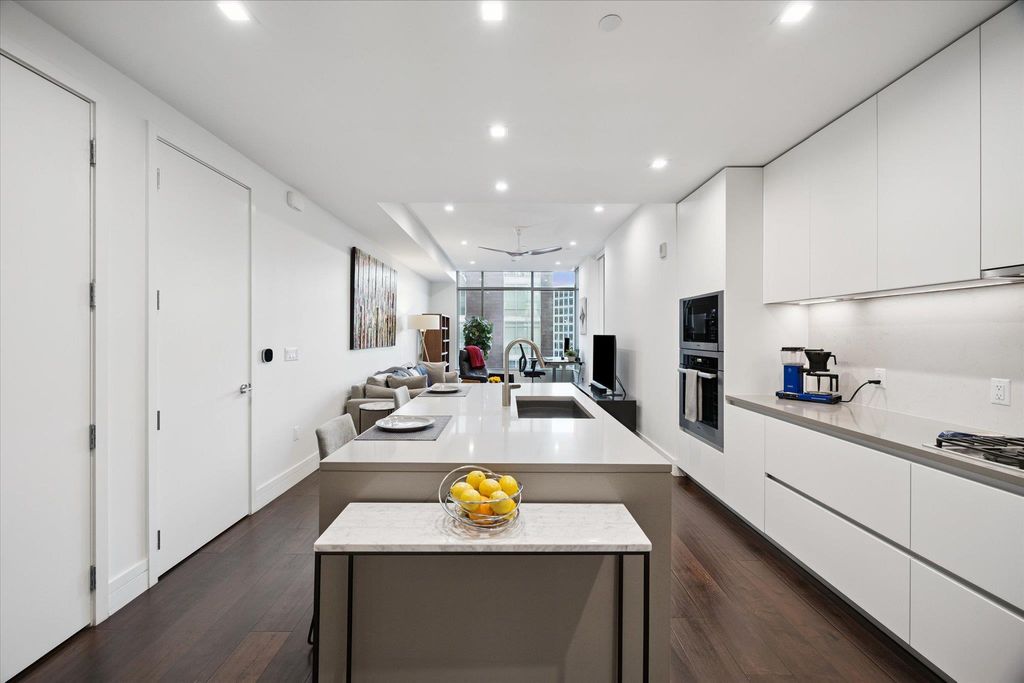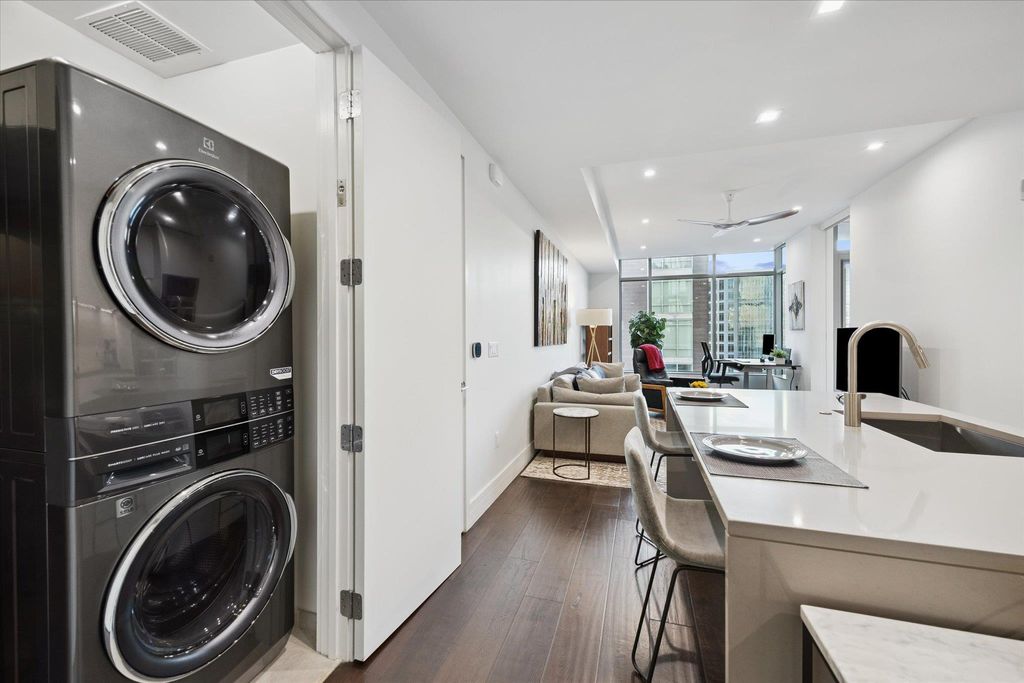 PRICE REDUCTION! Spacious 1 bedroom / 1 bathroom West facing condo at 5th&West Residences. Upon entering you will find a large kitchen with a waterfall quartz counter island with bar seating, custom cabinetry, state of the art Miele appliances and wine fridge. The entire condo features hardwood flooring throughout, electronic shades, recessed lighting and large picture windows that bring in tons of natural light. Use the extra space in the living room for a dining room, home office, reading nook or addtional seating area. In the bedroom you'll find floor to ceiling sliding glass doors that lead out to the balcony with panoramic views of Downtown Austin. The beautiful marble ensuite features a dual vanity, seamless glass shower and walk in closet. 1 parking spot with an EV CHARGING STATION & ONE LARGE STORAGE SPACE ($50k value) INCLUDED! Enjoy stunning building amenities designed by award winning Michael Hsu including the owner's lounge with multiple lounge areas, a chef's kitchen and large dining space perfect for entertaining. The state of the art fitness center features a yoga / spin room as well as a separate gym with state of the art equipment. Outside is the sky deck where you can take in the city skyline views and grilling areas leading out to the beautiful resort style pool deck. 2 guest suites are located on the amenity floor and can be reserved for a fee for your guests. Walk to Lady Bird Lake/Hike & Bike Trail, Whole Foods, Trader Joe's, 2nd St District, Seaholm District, West 6th St and all that Downtown ATX has to offer. Truly an amazing location and sought after luxury building! 1st year interest rate BUY DOWN offered from preferred lender Chandra Carthrae with Supreme Lending
