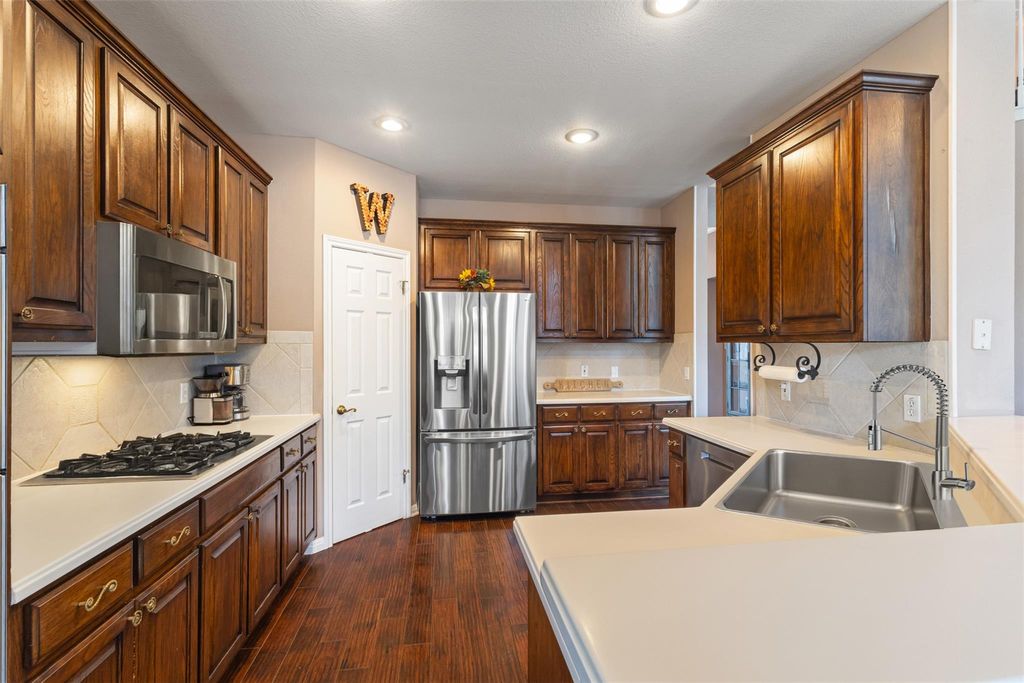 Price includes BRAND-NEW GE Profile Sterling Silver Appliances and a KRAUS Kitchen Sink! This rare Canyon Creek Home offers a flexible 4-bedroom, 3-bathroom, 3,116 sq ft layout on a spacious corner lot with no back or side neighbors. The main floor offers a generous sized Primary Bedroom, a Private Guest Suite with it's very own Full Bath, and at the front of the home you are greeted with a Flex Space that is perfect for a Home Office, Private Sitting Area, or even a Speak Easy. Upstairs includes two Guest Rooms with adjoining bathrooms, an Upstairs Loft that is open to below, and a dedicated Media Room. This one-of-a-kind Standard Pacific Floorplan makes this home ideal for Work From Home Setups, Multi-Generational Living, and Entertaining Guest. The oversized Laundry Room offers ample storage for Household Essentials and enough space to add a second refrigerator, making it a true Utility Hub for busy households. Step outside to your All-Season Pool and Spa, complete with a Gas Firepit, Indoor/Outdoor Speakers, and a Patio TV Mount ready for Outdoor Entertainment. The 3-Car Garage features a Tesla EV Charger that can convey with the sale. Major upgrades include a New Roof, Trane Furnaces, New Downstairs Condenser, Solar Attic Fan, Rachio Automated Sprinkler System, Smart Home Features, Updated Primary Bathroom Tile, Refreshed Fireplace, New LVP Flooring Upstairs, New Dishwasher and the Brand-New GE Profile Appliances & KRAUS Kitchen Sink to be installed before closing. Zoned to top-rated Westwood High School and walkable to Canyon Creek Elementary, this home is nestled in a community with Scenic Trails, Tennis & Pickel Ball Courts, Playgrounds, and a Community Pool "” all just minutes from Lake Travis and Major Highways including 183, Loop 360, and 45 Toll. With major upgrades completed and thoughtful details throughout, this Canyon Creek gem is move-in ready and waiting for your personal touch!