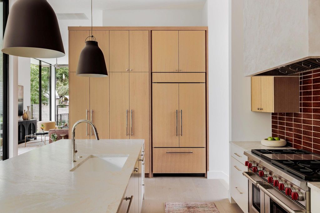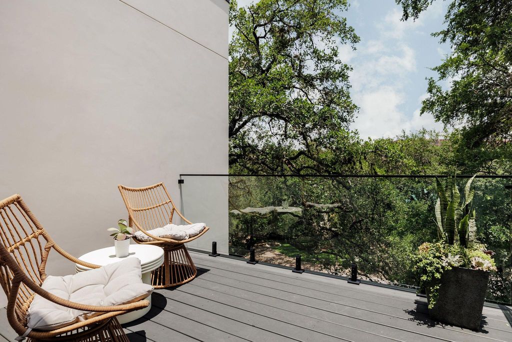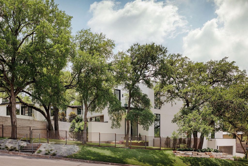 Welcome to the Belmond of Barton Hills"” where architecture & atmosphere gracefully converge. Situated on one of the most coveted streets in Barton Hills, this newly completed residence extends an invitation to a life of quiet sophistication, set beneath a canopy of heritage live oaks on a large .27 of an acre lot. This home is Designed by FAB Architecture & offers an expansive 4,401 square feet of meticulously curated interiors. Each of the five bedrooms have five ensuite baths & two half baths for guests. The lush grounds, adorned with annual & evergreen plants, evoke the romance of a private garden estate. Imagine a stunning pool & yard that feels like your own personal Hotel St. Cecilia, inviting moments of serene contemplation & relaxation. You are greeted with an impressive 12-foot, Western Steel and glass pivot door. The main level offers twelve ft. ceilings, wide-plank European white oak floors, Level 5 smooth drywall, alongside plastered accents including the fireplace & the primary bath. The kitchen embodies elemental luxury, with rift white oak cabinetry, Taj Mahal countertops & hand-fired clay tiles. Sub-Zero & Wolf appliances. This space flows effortlessly into a welcoming family room anchored by an oversized elegant fireplace. Upstairs, the primary suite offers a personal sanctuary. The Primary bath offers Calacatta Gold marble floors & countertops. Venetian plastered walls in the en suite bath frame a soaking tub, generous shower, and dual vanities, echoing the serenity of a world-class spa. Modern comforts abound yet remain subtle: a private elevator, 8-foot solid white oak doors, prewired for sound with outdoor speakers & dual HVAC units seamlessly integrated through linear mud-in diffusers. The exterior, with Integral Stucco and Western oversized windows & doors, exudes quiet confidence"”a contemporary form softened by timeless detail. This is more than a home; it's a destination for those who navigate the world with style, presence & ease.