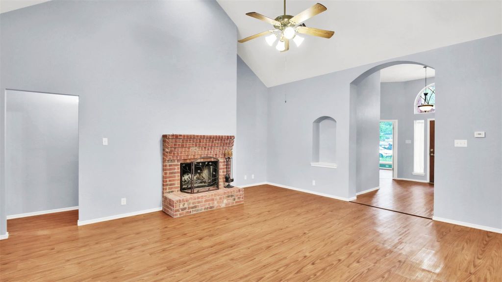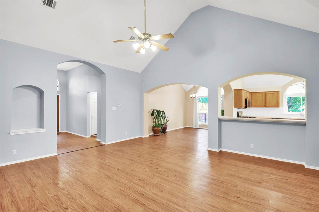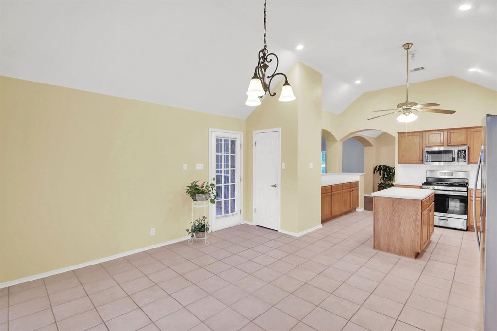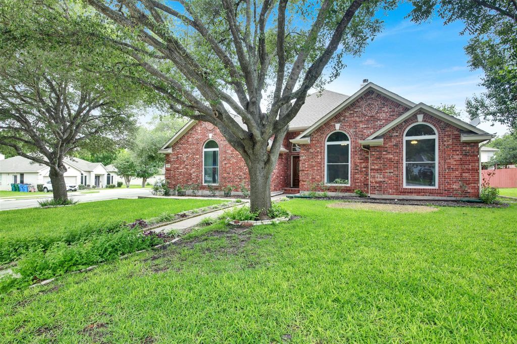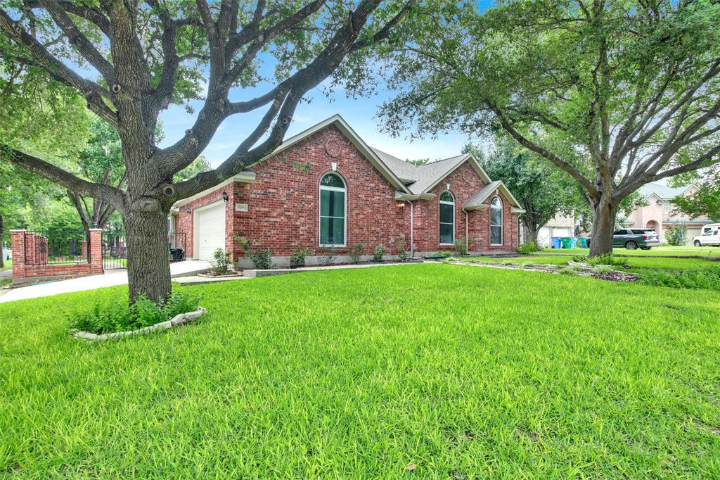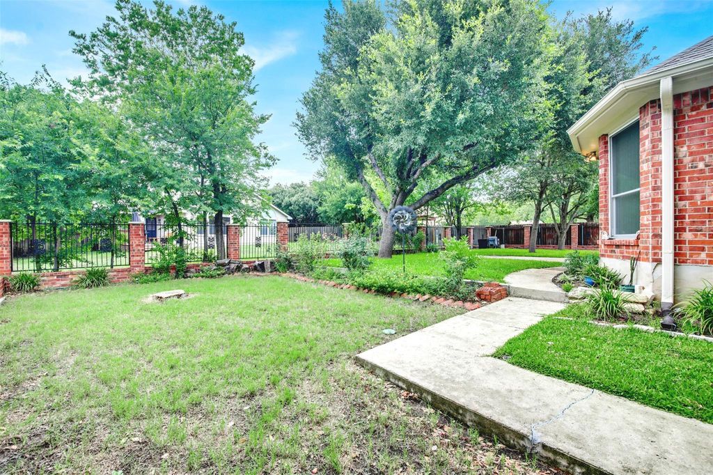 Welcome to your dream home nestled on a coveted corner cul-de-sac lot in the heart of Pflugerville, TX. This elegant 4-bedroom, 1-story brick beauty offers the perfect blend of upscale comfort and timeless design. Step inside to discover soaring ceilings that amplify the space and light throughout. The heart of the home is the massive luxury island kitchen, ideal for entertaining, with stainless steel appliances, abundant counter space, and an inviting eat-in layout that makes hosting a breeze. The spacious family room features a stunning brick fireplace with raised hearth, adding warmth and charm to your gatherings. A separate formal dining room offers flexibility for holidays or stylish everyday dining. Retreat to your serene primary suite, complete with a spa-like bathroom including a double vanity, garden tub, and separate shower. Thoughtful upgrades abound with recent exterior paint, extensive vinyl plank flooring, and 4-sides brick construction ensuring low-maintenance, long-term curb appeal. Enjoy the Texas outdoors year-round from your massive covered rear patio, overlooking a backyard enclosed with elegant wrought iron fencing"”perfect for pets, play, and privacy. Additional features include a side-entry garage for added curb appeal and convenience. This home truly checks all the boxes"”luxury, location, layout, and lifestyle. Don't miss your chance to own this extraordinary residence in one of Pflugerville's most desirable neighborhoods!