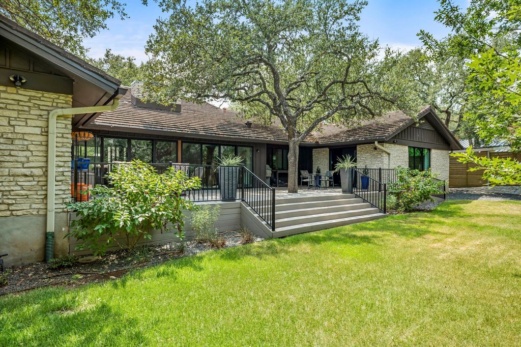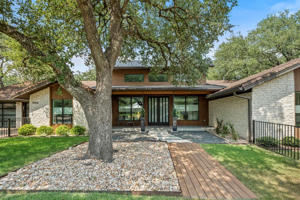 Northwest Hills. Curated. Timeless. 3904 Petra Path is distinguished by its dichotomous nature: The original exterior remains respectfully intact, yet the modernized interior aligns with today's lifestyles. 20-foot vaulted ceilings with an open floor plan, yet cozy nooks abound. Architecturally significant, yet approachable. The current owner took the home down to the studs in 2020 with carefully selected design choices and astute functional additions. Clerestory windows atop the 20-foot living room ceiling create ephemeral art out of sunlight. The kitchen nestles the living area, providing a communal entertaining space. The grand living area accesses a climate-controlled sunroom via 7-foot panoramic doors. The Malm fireplace in the sunroom gives a wink to the home's original era and beckons for a rocking chair and some vinyl. Two en-suites on opposite sides of the home provide the ideal scenario for guests, a home office, or multigenerational living. Engineered wide plank French oak, porcelain tile, and stone flooring are found throughout. Custom cabinetry and lighting add distinctive and subtle luxury. New landscaping, irrigation, decking, pavers, and a pergola adorn the 0.3+ acre lot. Behind the walls, you'll find all-new electrical systems, new water supply lines using freeze-resistant materials, a Navien continuous recirculating system, and a nifty water cutoff lever in the garage. Dual-zone HVAC ensures your new home is indeed a respite from the Texas heat. DECRA shake metal roofing is as handsome as it is sturdy. 3904 Petra Path is a representation of Austin: retro and renovated, thoughtful and unique, peaceful and playful. THIS is why you live here.