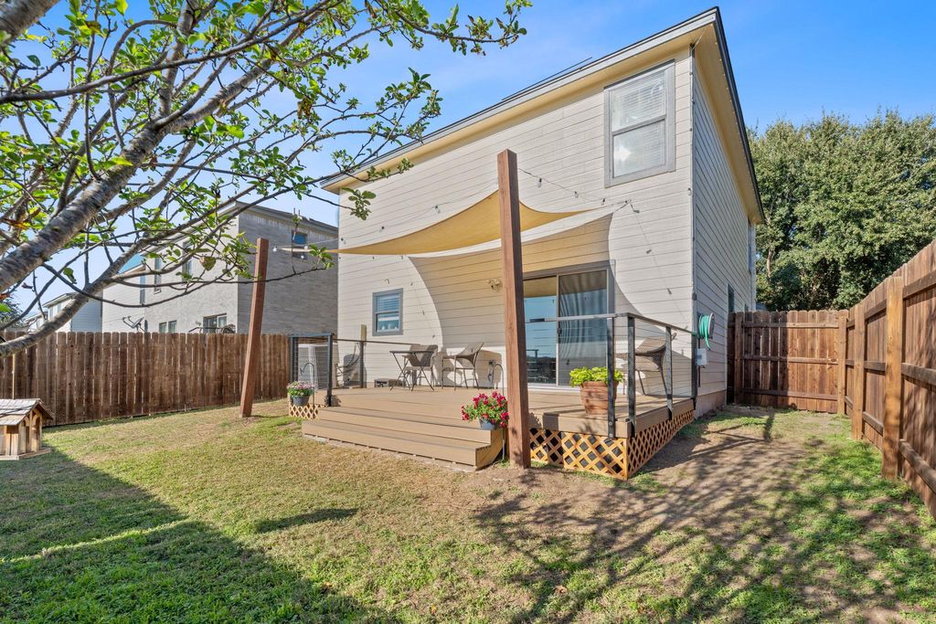 Sunset Serenity with No Rear Neighbors! Your move-in-ready home awaits with modern comfort and a peaceful backyard. Freshly painted exterior, 30-year roof installed in 2024, and custom TimberTech deck overlooking a lush, sunset-facing pond, the best view in the neighborhood. South-facing patio glows golden at dusk; perfect for evening relaxation with no rear neighbors. Step inside to LVP flooring flowing through an open-concept main level. The updated kitchen shines with sleek countertops, white cabinets, and stainless steel appliances (2023). Matching half-bath downstairs adds a polished touch. Upstairs, an inviting primary suite with flex space and walk in closet await you. Two additional spacious bedrooms and second living (potential fourth bedroom) invite your personal style. This fully connected smart home offers seamless control of multiple light switches, a Nest thermostat, a hardwired Ring doorbell camera, Ring floodlight cameras in the front and backyard, smart front-door lock, garage door opener, permanent eaves lighting, and deck lighting that glows at your command. Backyard features a freshly stained wood privacy fence with a rear gate for an easy walk to the neighborhood park and pool. Enjoy low-maintenance living in a prime South Austin location - walk to local schools and minutes to Onion Creek Metro Park. Shop Easton Park, Goodnight Ranch, and Southpark Meadows. Just 15 mins to Tesla, downtown Austin, or the airport. Don't miss this gem tucked away in South Austin!