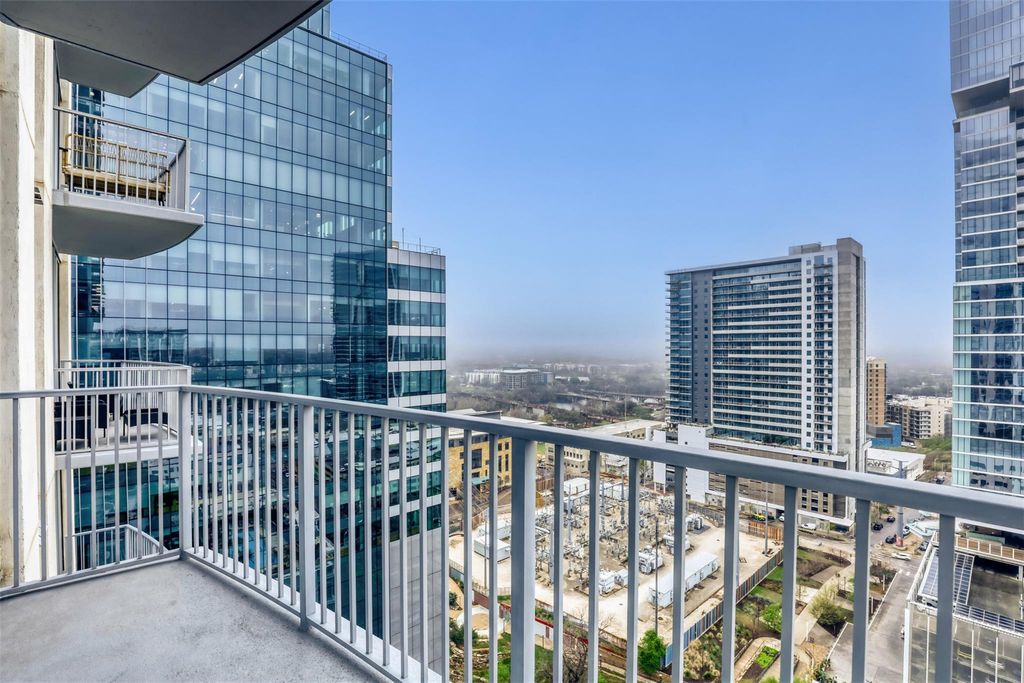 Stunning updated 2 bedroom, 2 bath condo at the 360 Condominiums located in the highly sought after Seaholm District. This west facing condo is brimming with natural light from the floor to ceiling windows providing panoramic views of the city skyline, Lady Bird Lake and the rolling hills of west Austin. This condo beautifully blends modern city living and comfort in the vibrant heart of downtown with quartz countertops, updated hardware and fixtures and fresh paint. Custom closets in all bedrooms and storage spaces maximize the home's functionality while maintaining sleek and luxurious living. A spacious master bedroom with balcony access and an en-suite double vanity bathroom provides tranquility while the second fully enclosed bedroom includes a transom window to bring in additional natural light and en-suite bathroom. A dedicated dining area enhances space flexibility, perfect for entertaining or a quiet night at home. The property also includes two premium reserved parking spots and free high speed internet. Residents enjoy exclusive amenities including 24 hour concierge, heated lap pool, upgraded fitness center including Peloton bikes, resort-style pool deck with grilling areas, clubhouse, game room, conference center and dedicated dog park. Located in the heart of the Seaholm District, this condo is steps away from Lady Bird Lake trail, incredible dining and entertainment, Trader Joe's, Whole Foods and the Second Street District, perfectly blending convenience and luxury. This unit is a must see!