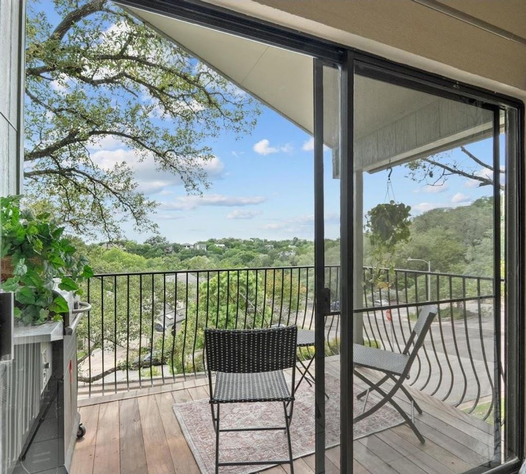 Perched atop a scenic hill, this Cat Mountain Villa showcases a split-level layout that offers panoramic views of the captivating Hill Country. Thoughtfully designed to enhance seamless indoor-outdoor living, it features four newly rebuilt balconies accessible through sliding glass doors, each providing a different view. Inside, the villa offers versatile spaces tailored to fit your needs. The lower level is a hub for entertaining, complete with a wet bar and a convenient powder room. A pool table currently centers the room and can convey should the buyer wish to have it! On the main level, a grand living room features a floor-to-ceiling fireplace, serving as a gorgeous focal point and elegantly separating the living and dining areas. The kitchen offers abundant cabinetry, built-in appliances, and a convenient butler's pantry. The primary suite is the perfect retreat for the owners, offering a spacious design suitable for a seating, plantation shutters for privacy and light control, and an ensuite bath with dual quartz vanities, a free-standing soaking tub, a separate walk-in shower, and direct access to a fenced-in patio. Continuing to the upper level you'll find a nook that presents an ideal space for a home office. Additionally, three generously sized secondary bedrooms offer ample closet space upstairs and offers access to an upgraded guest bathroom complete with a dual vanity. Recent upgrades include a metal roof replaced in the last few years, one brand new HVAC unit and a second unit that is only a year old. The al fresco patio serves as the perfect space to entertain, grill, dine, and lounge under a canopy of trees. This house would be a perfect "lock & leave" as there is no backyard to maintain. The inviting community draws you to the outdoors, where you can leisurely stroll along scenic tree-lined roads to the community pool, and just a bit further, to the tennis courts. Come view this beautiful, versatile, and spacious home today!
