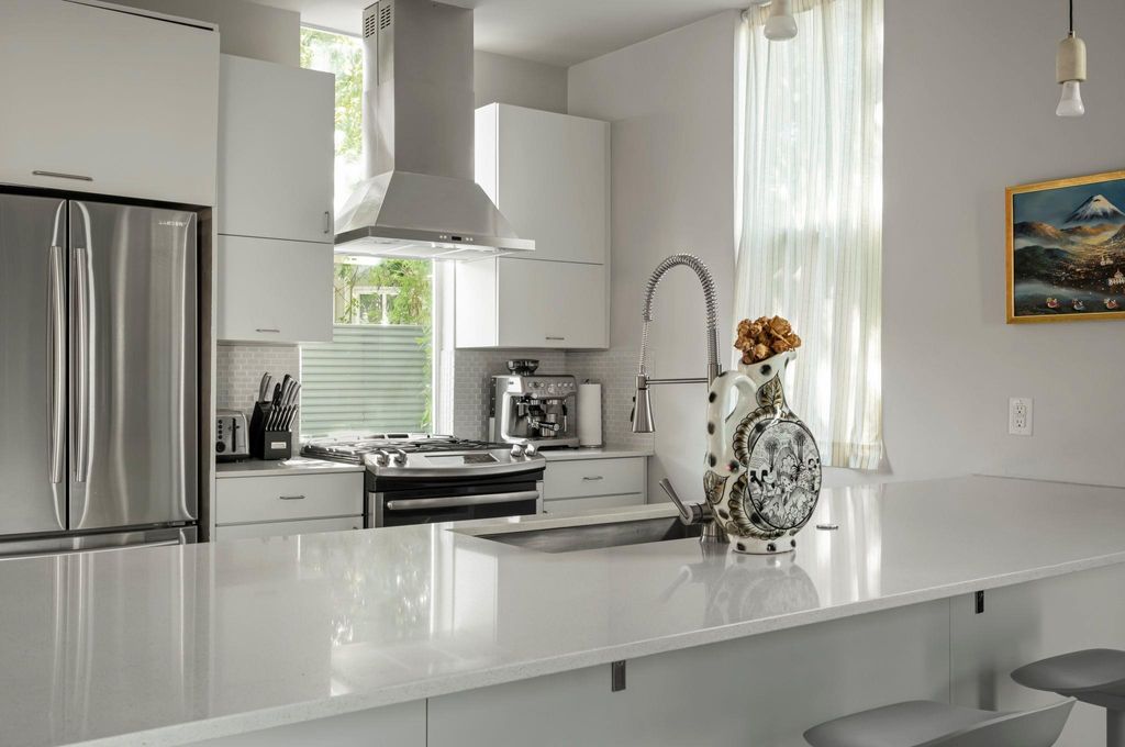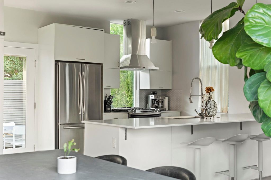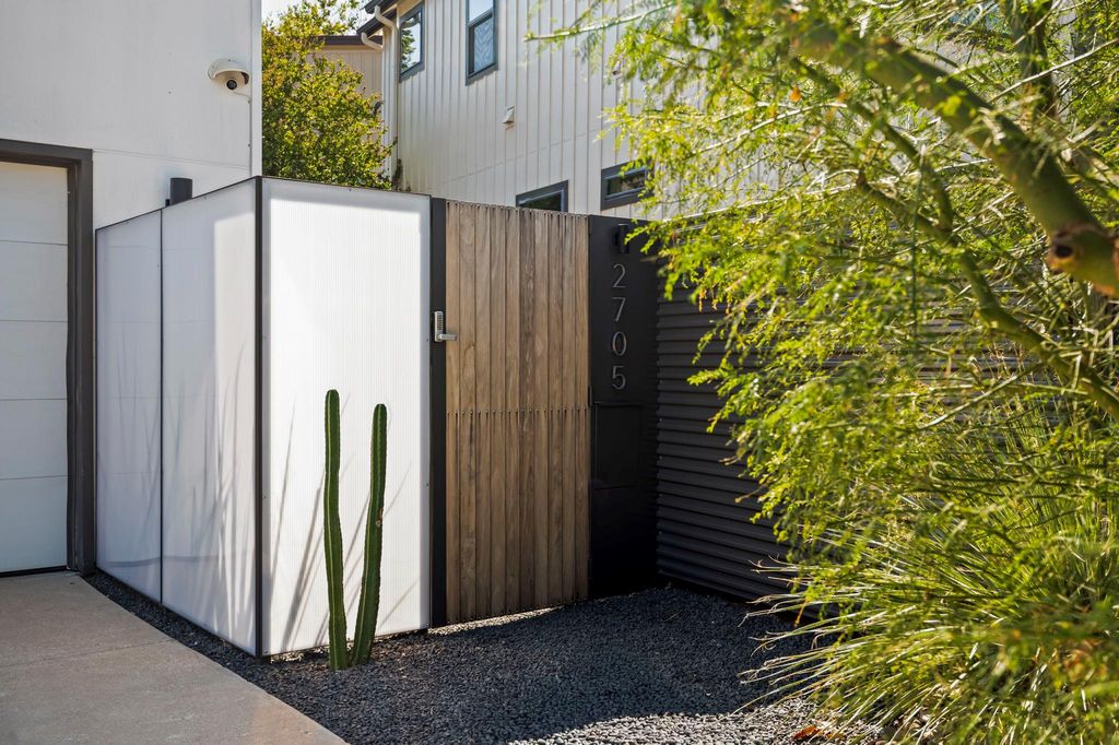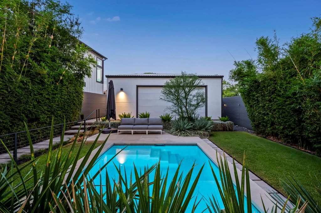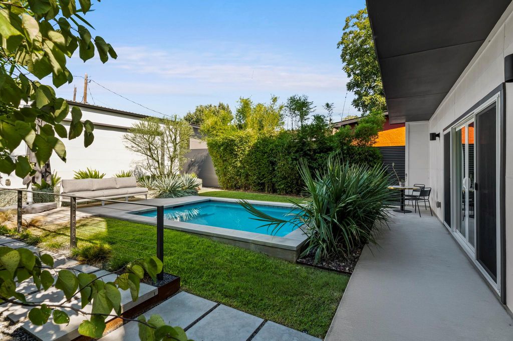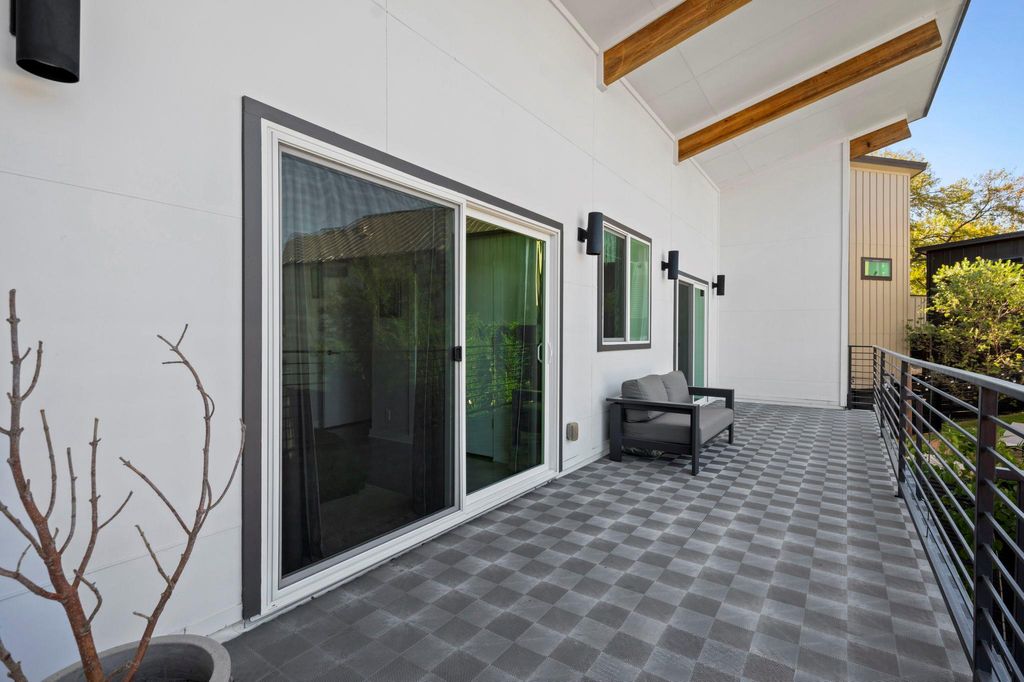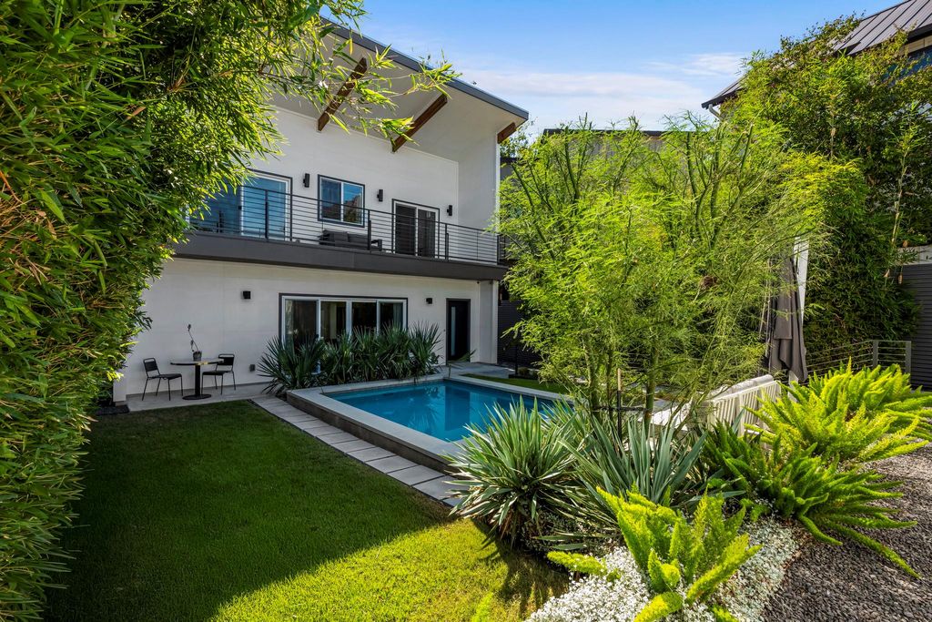Tucked behind a private gated entrance, this architectural gem rests amid lush, leafy grounds, offering rare seclusion in the heart of vibrant East Austin. Envisioned by renowned Austin architect Francois Levy, whose work has been celebrated in Dwell and featured on HGTV, the residence is a one-of-a-kind urban sanctuary that seamlessly blends indoor sophistication with outdoor serenity. Completed in 2015, this two-bedroom, two-bath resort-style home is centered around a stunning heated pool, creating a private oasis for relaxation and entertaining. A unique, dual-sided, oversized, 2-car garage effortlessly transforms into a cabana-style lounge, perfect for effortless al fresco living. Sustainability and design are closely intertwined here, with native landscaping, spray foam insulation, a long-lasting metal roof, and a thoughtful floor plan. Light-filled interiors, an expansive balcony, and a private courtyard designed for gatherings under the stars showcase the best of Austin's modern architectural spirit. With its distinctive layout, refined finishes, and seamless integration of nature and design, this residence is more than a home "” it is a contemporary statement piece destined to leave a lasting impression.