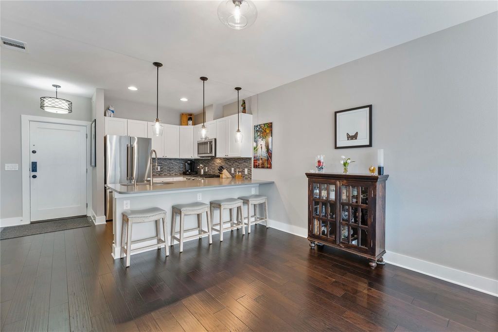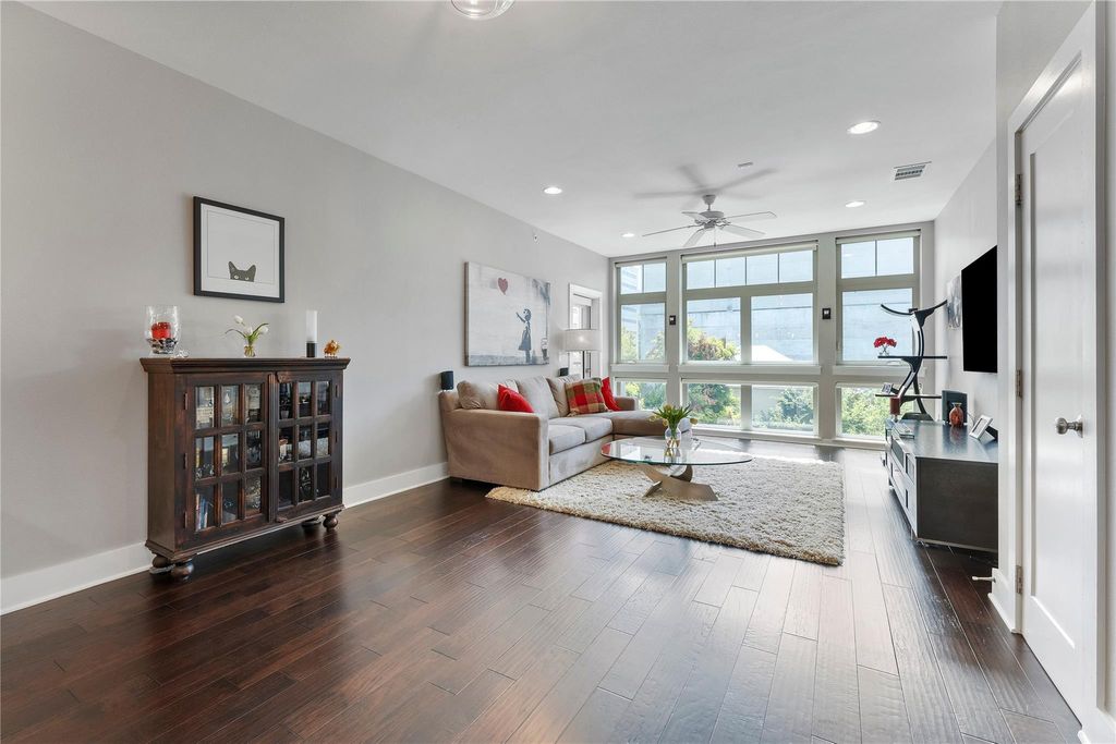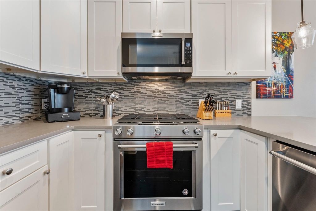 Nestled in a quiet, tree-lined neighborhood, this unique and customized home offers the perfect blend of convenience and comfort. Enjoy the vibrant energy of downtown while benefiting from a spacious floor plan and low HOA fees"”city living at its best. Inside, you'll find an expansive kitchen island, upgraded stainless steel KitchenAid appliances, and California closets throughout, offering more storage space than most downtown units. The oversized, two-headed shower features a built-in bench and niche for ultimate relaxation. The spacious bedroom easily accommodates a full king-size suite and a desk, complete with blackout motorized shades controlled by an app for effortless convenience. With thoughtfully designed upgrades, including automated window treatments and ample storage, this home is a rare find in an unbeatable location!