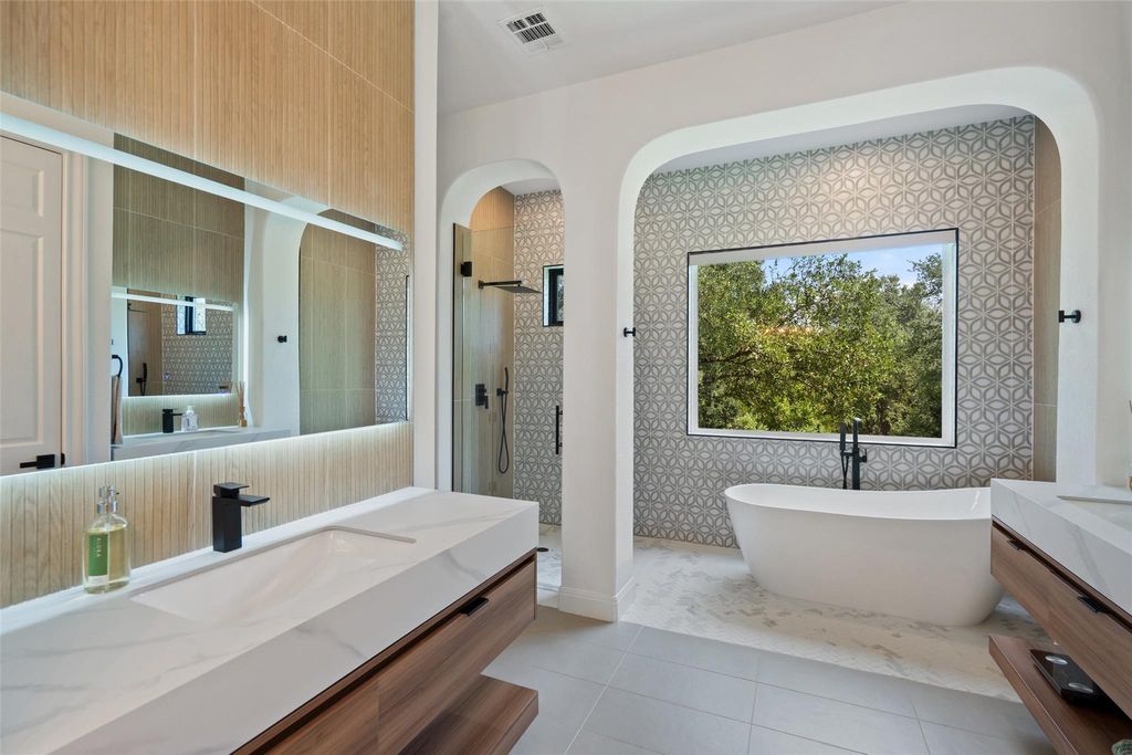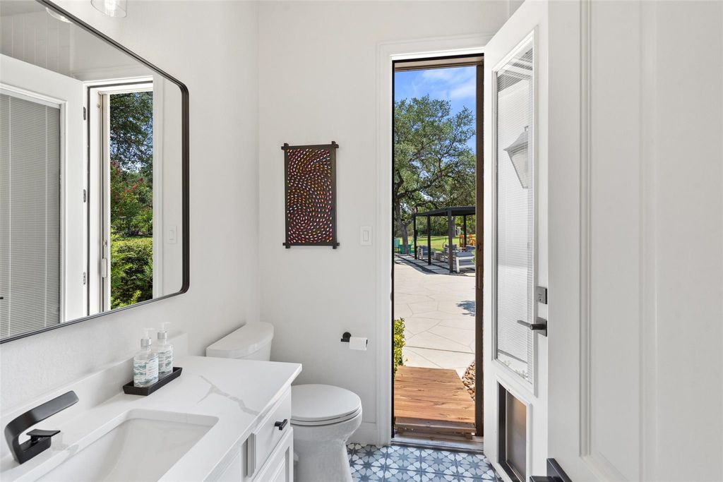 Experience resort style living in what feels like a brand new Mediterranean Spanish estate, completely reimagined from top to bottom with all new major mechanicals and designer finishes. Set on nearly three acres in highly regarded Lake Travis ISD, this private retreat blends timeless architecture with a fresh, modern aesthetic. Every surface and system have been replaced or upgraded, including new HVAC units, water heaters, Andersen windows, electronic shades, and a whole home water purification system. Inside, the open concept living spaces showcase white oak flooring, custom fireplaces, and abundant natural light. The chef's kitchen is fully rebuilt with Sub Zero and Wolf appliances, custom soft close cabinetry, stone countertops, and a generous center island ideal for entertaining. The primary suite is a showpiece featuring a marble spa bath with soaking tub, walk in shower, and a custom designed closet with built ins. Outdoors, enjoy a completely renewed backyard oasis with a resurfaced pool, waterslide, and spa surrounded by new patios, a pergola with electricity, exterior lighting, fountain, and fresh hardscape. Lush new landscaping includes a fruit tree orchard, upgraded irrigation system, and fresh sod across the 2.75 acre property, all supported by a 500 foot well. This property offers the rare combination of resort living, privacy, and everything brand new, a move in ready estate in one of the area's most sought after locations, just minutes from Lake Travis and multiple boat ramps.