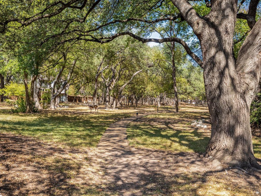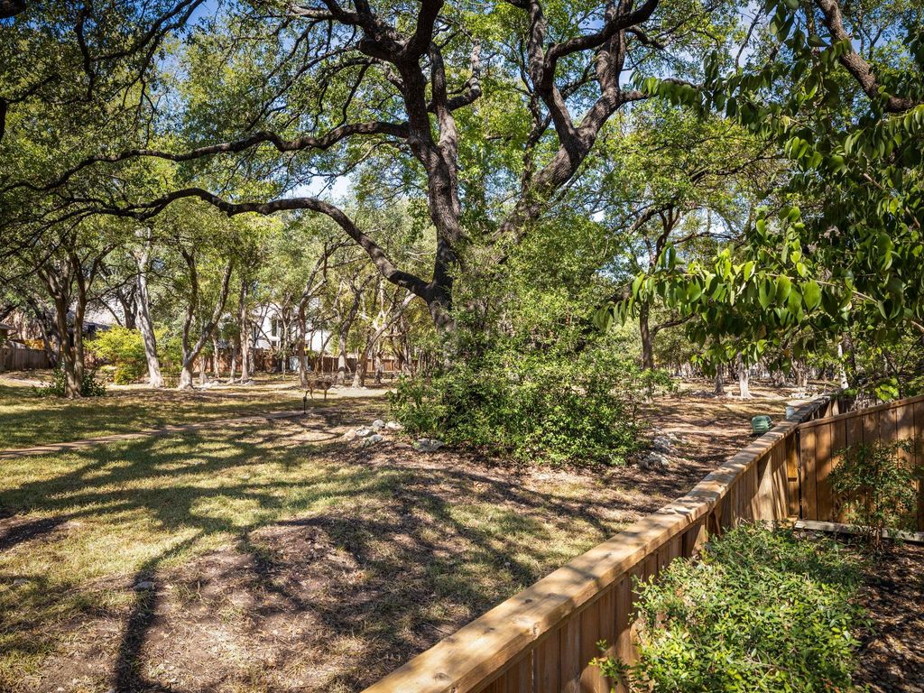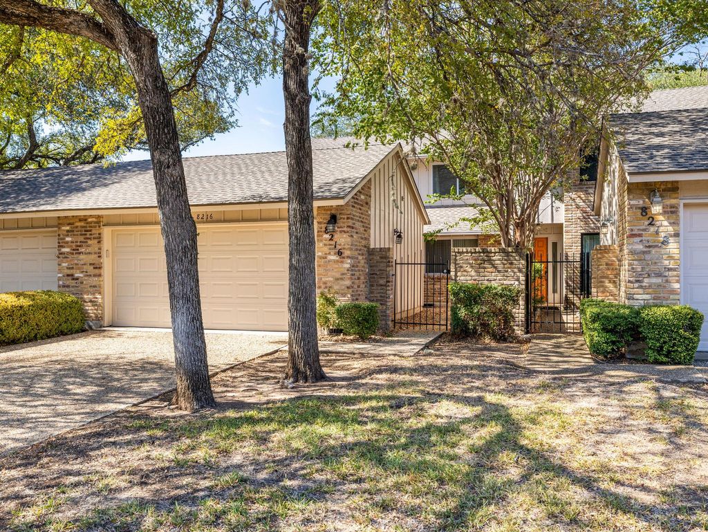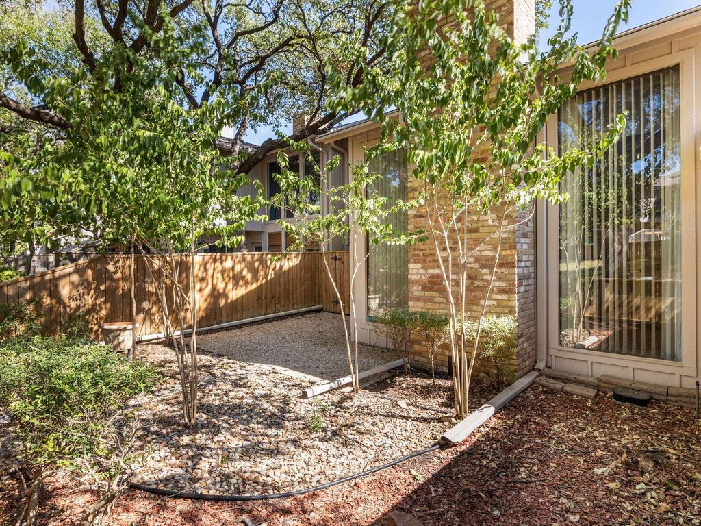 This comfortable, tranquil townhouse is "Inside the Loop" in North Hills 78759, right at Mopac & Steck . It's 1,675 SqFt with 2 Bedrooms, 2 Bathrooms, large flex room upstairs and 2-car garage. Downstairs is the generous family room (approximately 16'3" x 13'11") with sliding door to outdoor patio, a separate wet bar area with sink, the 2-story vaulted ceiling, large picture windows and a woodburning fireplace. The primary bedroom with ensuite bathroom is on the main floor and is approximately 15'11" x 11'6". The second bedroom (approximately 11'6" x 11'3") and bathroom are upstairs with the spacious, versatile flex space (approximately 19'7" x 11'11") and is perfect for an office(or two!), exercise/gym area, crafting, entertainment/media room or whatever you dream. This unit and its outdoor patio back to a scenic wooded lush green space with your own gate to access the walking trail to the community swimming pool and club house. The HOA mows the front lawn and trims the hedges along the driveway. New roof in 2022. New sliding door to patio and new carpet downstairs. The townhouse has been pre-inspected and over $7,500 in updates and repairs were made to the HVAC system, electrical, plumbing, etc. A rare find in this condition in this location, just a few minutes from downtown Austin, the Domain, restaurants, shopping, and entertainment. If you've been looking for a serene sanctuary to retreat to after a busy day, or to work in from home, with great neighborhood amenities and all the benefits of being close in to the best times in Austin, be sure to check it out!