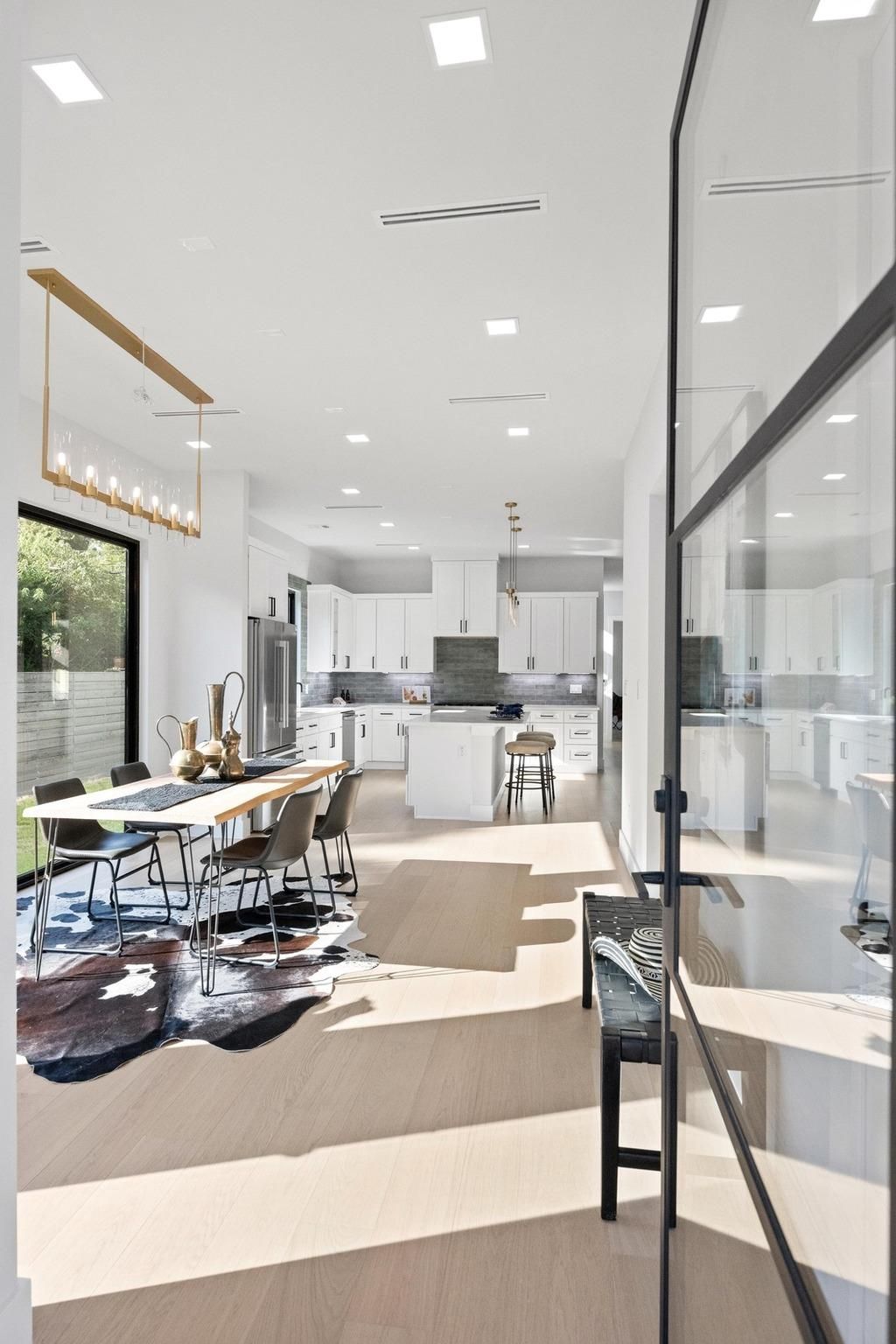 Experience elevated living in this newly constructed 4-bedroom, 3.5-bath masterpiece, ideally situated in the heart of Austin's coveted 78704. Spanning 2,973 square feet, this thoughtfully designed residence blends modern sophistication with resort-style comfort. The main level hosts a spacious primary suite with serene views of the pool and sun deck. Its spa-like bath features a dual vanity, expansive steam shower with a soaking tub inside, and a generous walk-in closet. The living room is an entertainer's dream, complete with built-in bookcases, a dry bar, recessed lighting, smart thermostat, and floor-to-ceiling sliding glass doors that blur the line between indoor elegance and outdoor leisure. The chef's kitchen is outfitted with quartz countertops, a butler's pantry, and seamlessly opens to the family room for easy entertaining. Additional highlights on the main floor include a stylish powder room, laundry room with utility sink, and extra storage tucked neatly beneath the stairs. Upstairs, you'll find three additional bedrooms"”two with en-suite baths"”along with a versatile loft area perfect for a media room, playroom, or home office. Step out onto the rooftop deck and take in the treetop views and Austin skyline. Smart home features, refined finishes, and designer details throughout make this home a true retreat in one of Austin's most vibrant neighborhoods.
