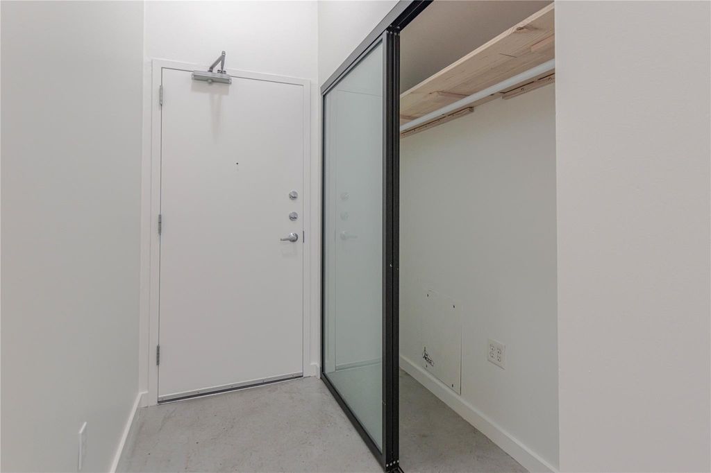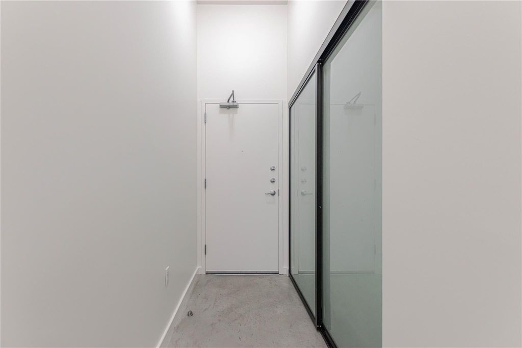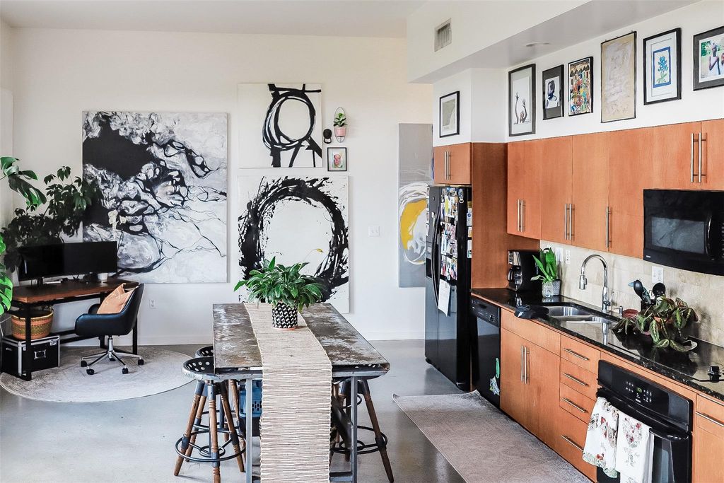 Welcome to one of the best units at the ESTE Condos! Rare top floor end unit loaded with walls of windows. Notice the 11 foot ceilings the moment you open the door. Great loft feel with exposed venting and double transom wood windows. Large open floorplan with East and South orientation providing tons of natural light. Easy to maintain concrete floors throughout. Nice sized bedroom with glass sliding privacy wall. Open kitchen with granite counters & travertine backsplash. Huge closet & laundry area with ELFA storage, washer & dryer. Spacious bathroom with dual entries, granite counters & travertine tub surround. Flexible living & dining spaces with small outdoor private balcony. One covered parking spot with additional overflow parking. This amazing low rise community is right on East 6th Street and walkable to many cool restaurants and bars like... Suerte, Lazaruz Brewing Co, Ciscos, Zilker Brewing & Royal Blue Grocery.