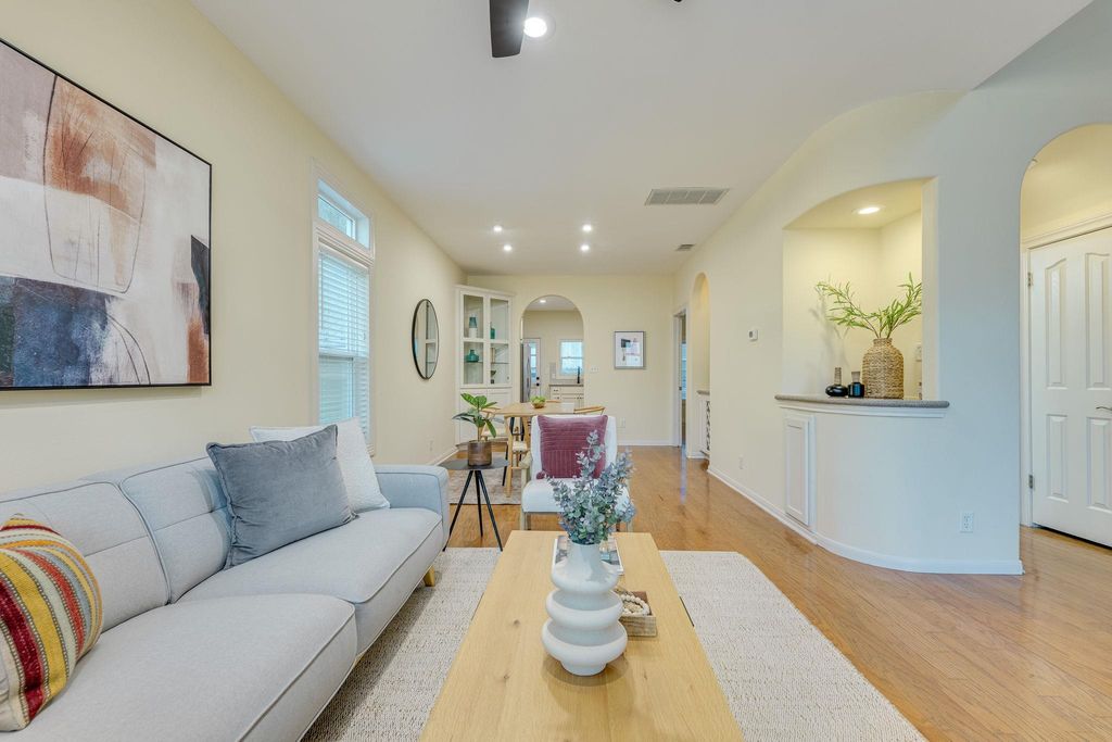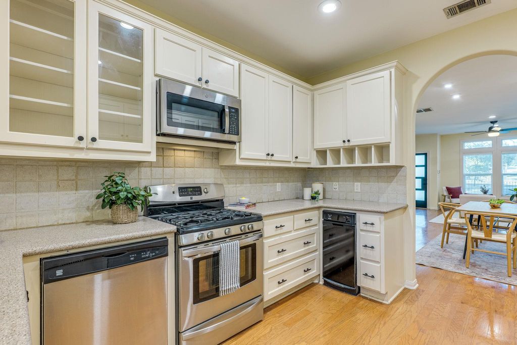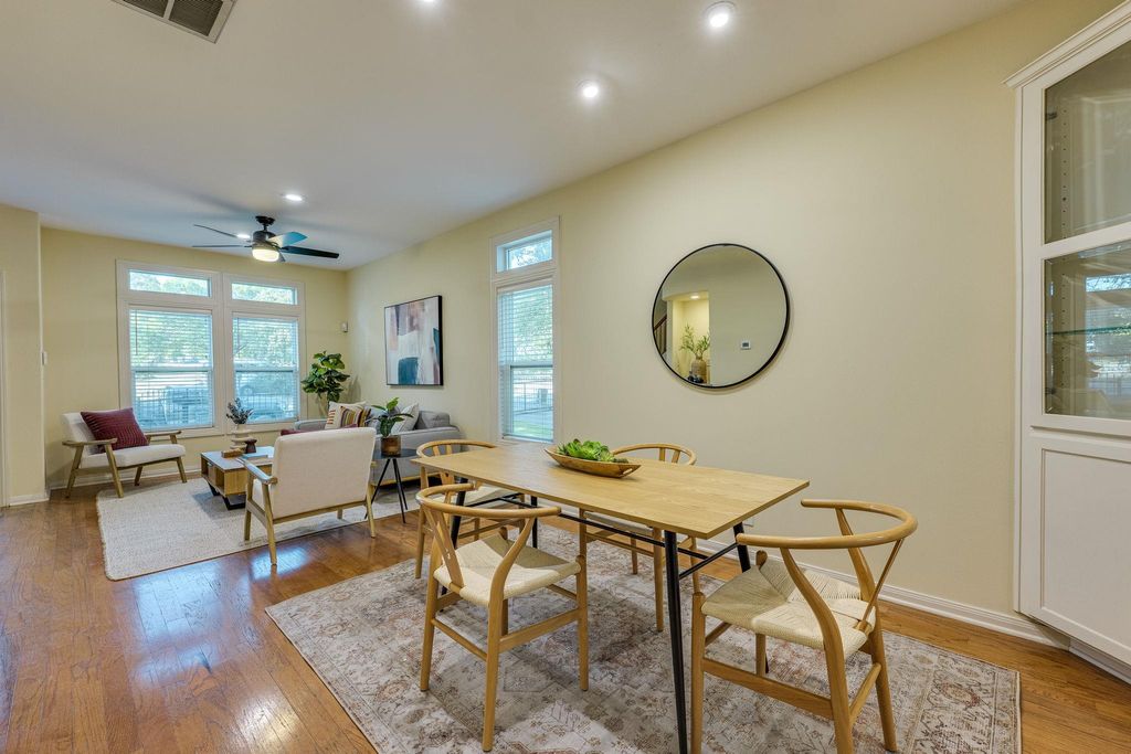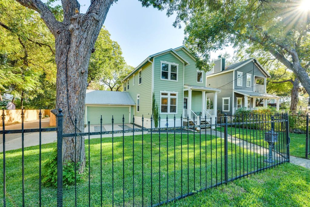 This craftsman style home is conveniently located just minutes from UT, downtown Austin, Dell Children's Hospital and all the desirable dining spots along Manor Rd. A truly walkable property. This perfect blend of cozy traditional with modern touches throughout including a dry bar with built ins, custom pantry cabinetry, and adorned with windows. On the main floor you are greeted with arched walkways, an open living and dining space with a kitchen overlooking the back living space. An additional room downstairs could be the perfect home office, media room or 3rd bedroom. Upstairs the primary suite features vaulted ceilings, a jetted tub, separate shower, separate vanities and a large walk in closet. A secondary bedroom also features vaulted ceilings and two large wall closets. Across the hall is a third bathroom and utility room. The fully fenced with electric gate leads to a rare full 2 car garage.