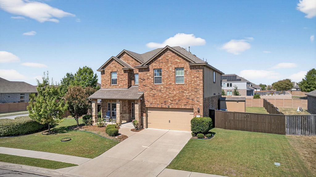 Welcome to your dream home in the highly desired ShadowGlen community! This spacious 4-bed, 2.5-bath home with a dedicated office sits on a rare oversized 0.25-acre corner lot "” one of the largest in the neighborhood! Inside, you'll find 2,766 sq. ft. of thoughtfully upgraded living space, featuring beautifully updated flooring on both levels and plush carpet so soft it feels like you're walking on pillows. The well-lit heated and cooled garage includes LED lighting, epoxy floors, and custom shelving "” previously used as a woodworking shop, perfect for hobbyists or anyone craving extra workspace. The backyard is made for entertaining with a 50-foot concrete patio, retractable sun shades, and a Tuff Shed for added storage. A doggy door is ready for your four-legged family members, and upstairs, a flexible media or game room comes complete with the mounted TV included. Additional highlights include a whole-house water filtration system and water softener for cleaner, better-tasting water throughout the home. The refrigerator, washer, and dryer are also included "” making this one truly move-in ready. You won't find this kind of lot size in the newer sections of ShadowGlen "” plus, you're just a short walk or golf cart ride from the ShadowGlen Golf Club, the community water park, and HWY 290, offering quick access to Austin. This home checks every box "” space, upgrades, and lifestyle. Schedule your tour today before it's gone!