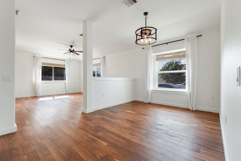 Welcome to 13701 Harrisglen, a beautifully updated 4-bedroom, 2-bath single-story home situated on a spacious corner lot in Pflugerville. This inviting property offers a smart layout with no carpet throughout, making it both stylish and easy to maintain. Step inside to find fresh interior paint completed in September 2023, creating a light and airy feel. The open floor plan seamlessly connects the living, dining, and kitchen areas, offering a perfect flow for daily living and entertaining. This home has been thoughtfully upgraded with comfort and efficiency in mind. A brand-new backyard deck, added in February 2023, provides the ideal space for outdoor gatherings or relaxing evenings. The fully installed sprinkler system (August 2024) ensures a lush, green lawn with ease. Significant HVAC and furnace improvements, totaling over $10,000 between February and June 2025, include a new furnace circuit board, a replaced AC condenser, and a whole-home air purifier for cleaner, healthier air. With four spacious bedrooms, two full baths, and a large corner lot offering added privacy, this home delivers both function and charm.