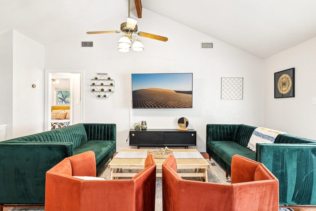 Dive into the Austin lifestyle at 11500 Sterlinghill, a beautifully updated 4-bedroom, 2-bath home on a quarter-acre lot with a sparkling in-ground POOL and no HOA! Inside, rich wood floors, abundant natural light, sky-high vaulted ceilings with wood beams, and a cozy brick fireplace create a warm and welcoming vibe. The bright, open kitchen pairs perfectly with the spacious dining area, forming a seamless hub for morning coffee, weekend brunches, and unforgettable dinner parties. Out back, your own resort-style haven awaits, complete with a shimmering pool, spacious lounging areas, and leafy shade trees perfect for lazy afternoons or lively get-togethers. Situated in sought-after Gracywoods, you're minutes from The Domain, Q2 Stadium, top dining spots, and scenic trails at Walnut Creek Park, with easy access to I-35 and Mopac. Zoned to Pflugerville ISD schools including River Oaks Elementary, Westview Middle, and John B. Connally High, this property also offers the option to purchase all furnishings, making it a turnkey dream for a primary home, second home, or Airbnb investment. Come tour today!