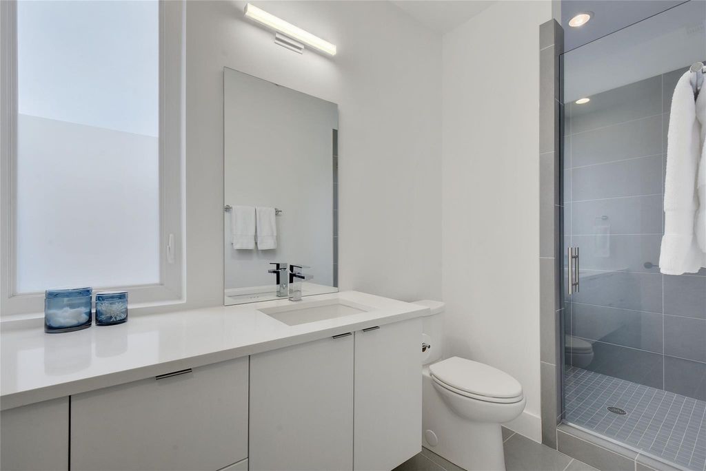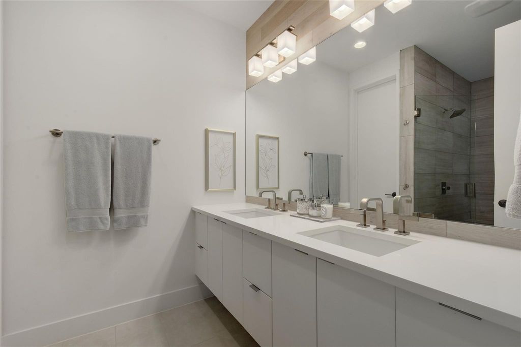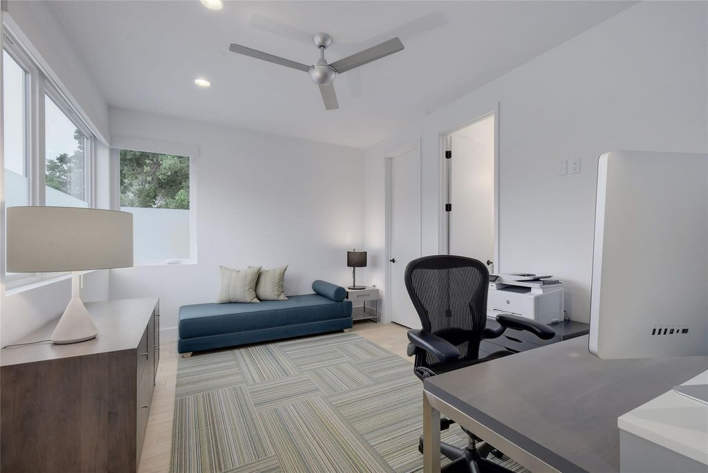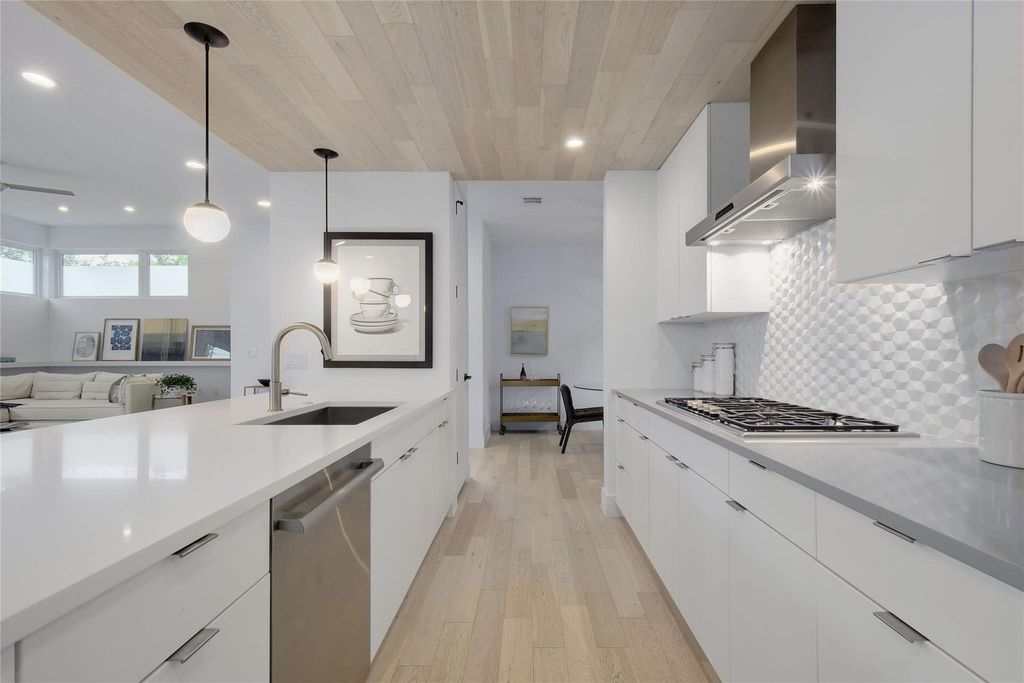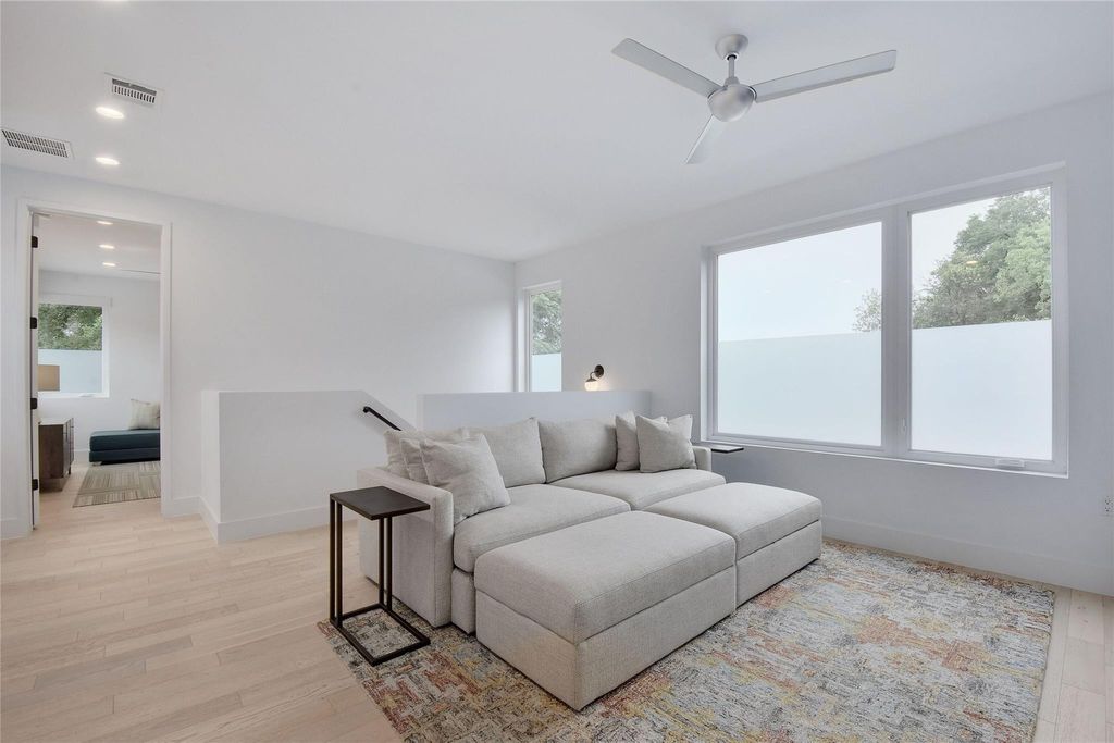 Light-filled luxury in the heart of 78704. Private corner lot w/ room for a pool. Well-planned living with indoor/outdoor flow. High-end kitchen with Thermador appliances & huge L-shape pantry. Rare, spacious 2-car garage. Walkability to restaurants, shopping, schools. Easy driving: ~5 min to downtown, ~12 min to ABIA, ~15 min to golf, tennis, pickleball, and social activities at Westlake Country Club. This free-standing, single family home w/ 3 bedrooms + 3.5 baths offers 2339 sqft of living space. Nestled in one of Austin's most desirable zip codes. Situated on a gated & flat lot, surrounded by mature plants & trees. As you step into the open living area, the eye-catching 11' ceilings, custom-built art shelves, & large picture windows strike a balance between elegance & comfort. The wrap-around sliding doors invite you to a large patio, extending your living area into the outdoor space. The kitchen boasts Thermador range top, wall oven & microwave, refrigerator, dishwasher, quartz countertops, ample cabinetry & pantry for storage. The kitchen's seamless flow to the outdoor patio & grilling area, dining room, & living room enhances the overall culinary experience. Retreat to the primary suite located on the first floor with its own private patio, large windows adorned with custom wood valances & blackout shades, a sizable walk-in closet, + an ensuite double-sink vanity bathroom. Upstairs, find comfort in two additional bedrooms, each offering ensuite bathrooms, walk-in closets, & custom wood valances & blackout shades. A custom entertainment center in the media room completes the upstairs living area, perfect for movie nights. Large windows open to views of treetops & sky. Outdoor living highlights include a wrap-around yard that provides plenty of space for entertaining, a grilling area, & lawn games. The exterior of the home was just recently painted. The 8' double-sided privacy fence ensures a peaceful retreat, & tasteful landscaping adds a touch of tranquility