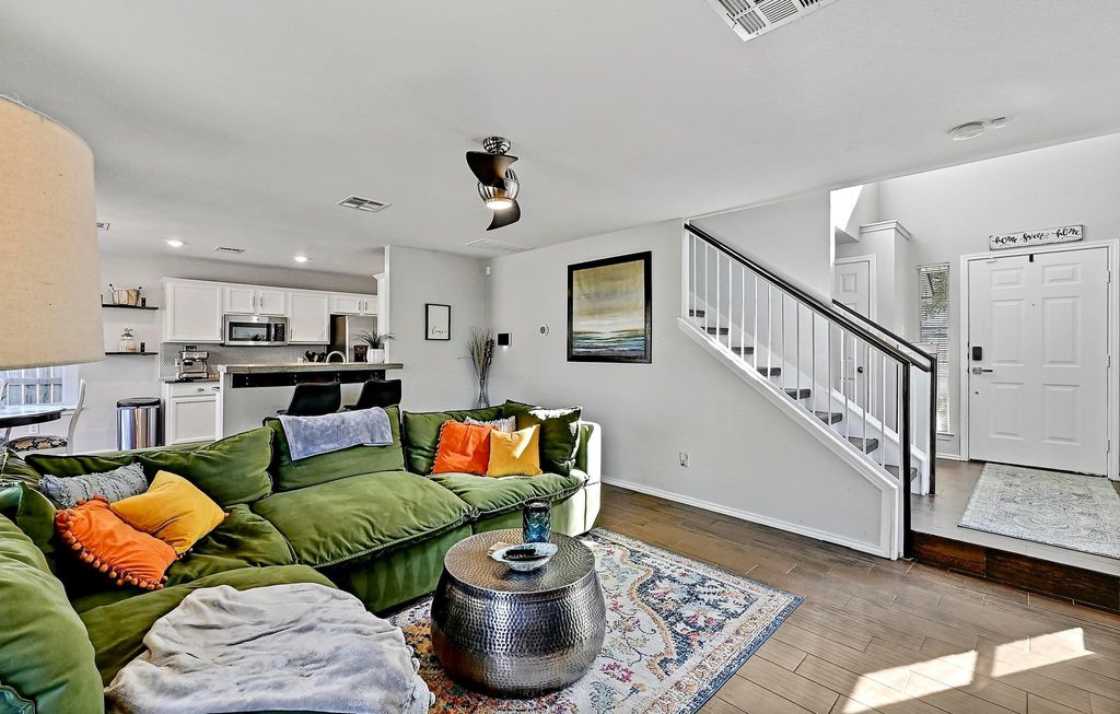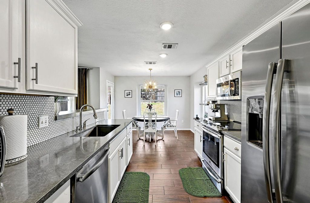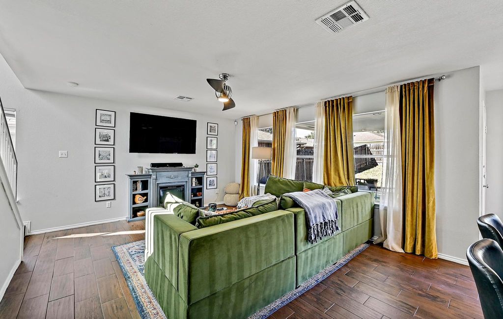 Absolutely adorable & affordable home nestled under a shady tree & next to one of the lovely pocket parks in the neighborhood! This home has been lovingly updated with beautiful modern features including wood tile in the living/kitchen/stairs/gameroom, modern ceiling fans & sputnik lighting, boxed out window seats, floating shelves, tasteful wallpaper accents, brushed nickel ceiling fans, curtains & 2 inch wood blinds, gutters, garage door opener & the water heater and roof were recently replaced! This beautiful open floorplan features lots of big picture windows that let in tons of natural light making this a bright & happy home! The kitchen is open to the family room & boasts white cabinets, Quartz counters w a concrete bar overhang, penny tile backsplash, deep farm sink w goose neck faucet & sleek stainless steel appliances! Wrought iron stairs lead you to a nicely sized gameroom perfect for a kids hang out or study area! The oversized primary bedrm leads to a spa like bath w double vanities, separate tub & shower, custom mirrors & huge walk in closet! The back yard features a covered patio overlooking the huge yard that is perfect for entertaining friends & family! There is no neighbor on the right side as it sides the greenbelt/open space & park that is fabulous place to just let the kids play on the playground with plenty of room for kickball/baseball/football games! This neighborhood has a lovely pool, several parks, basketball courts & pavillions to have parties at! This is the perfect location just 20 min to Austin and UT or a short commute to the new Tesla Giga Factory, Space X or Elon Musks Boring company! You can enjoy all of the Live Music festivals, Arts, & culture that Austin has to offer within a quick drive & still feel the quiet peacefulness of being just outside the city. What a great place to live!
