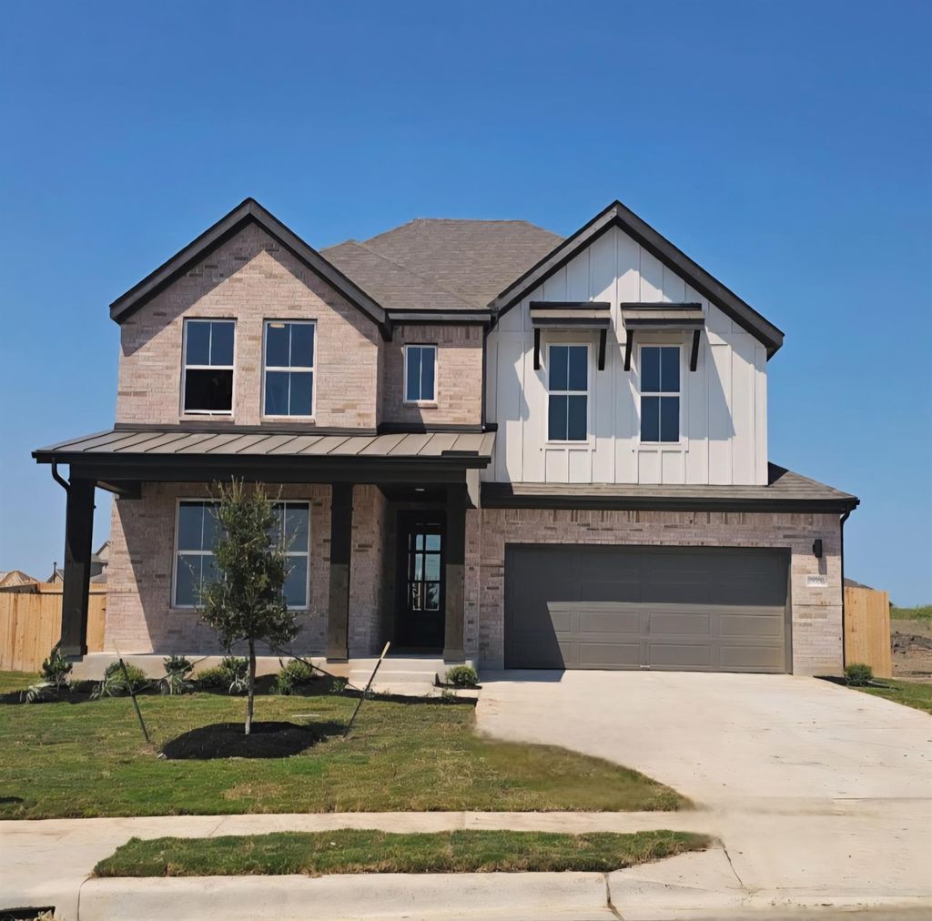 Brand New Travis Floor Plan by CAPITOL COMMUNITIES. This spacious 2-story home offers 5 bedrooms and 5 full bathrooms, with 2 bedrooms and 2 baths on the main floor. The layout includes a private study, a large game room overlooking the 2-story family room, plus covered front and back porches for outdoor living. Over $60k in upgrades included! The designer kitchen features built-in appliances, a large island, and ceiling-height cabinets. The luxurious primary suite includes a walk-in shower, soaking tub, and an oversized closet with direct access to the utility room and extra storage. Secondary bedrooms also offer large closets. Energy-efficient features include spray foam insulation, a tankless water heater, low-E windows, and Energy Star appliances. Additional highlights: stone/brick exterior, composite shingle roof, 2-car garage, and full sprinkler system. Situated on a corner lot facing east, directly across from the future amenity center. Contact the sales representative for details on current incentives.