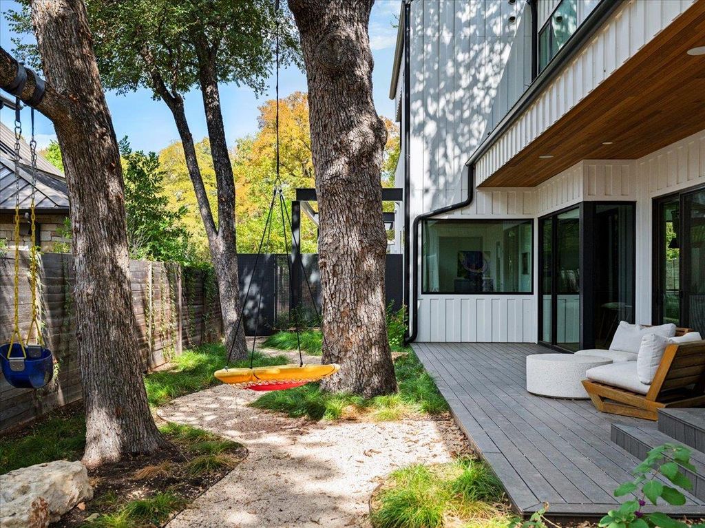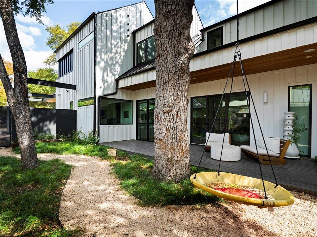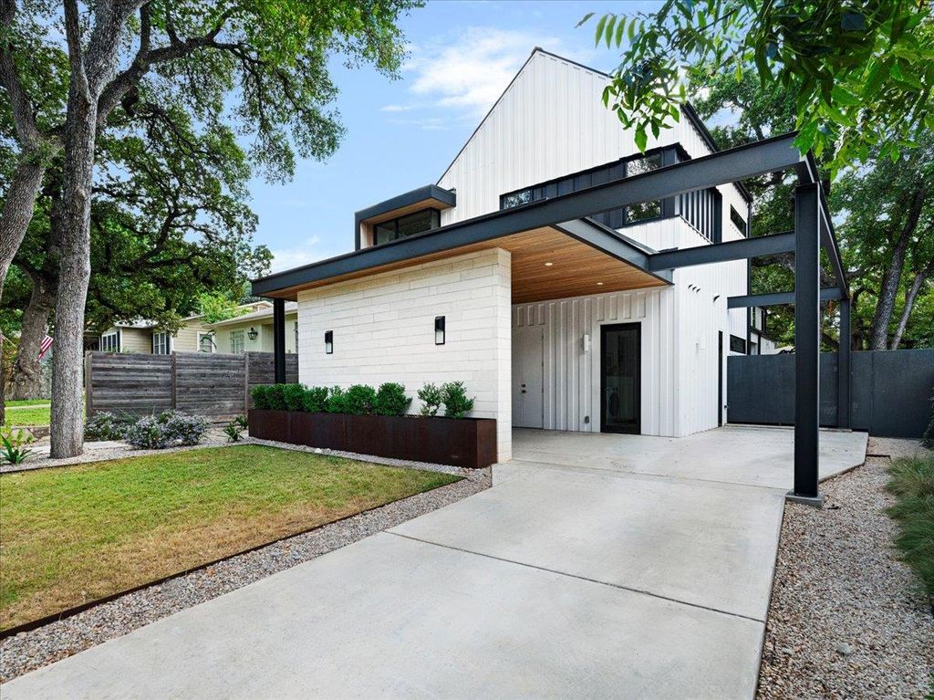 Welcome to this incredible modern home set on one of the most desirable streets and neighborhoods in Tarrytown offering the perfect combination of luxury, comfort and design. Built in 2021 by Parkside Homes and designed by Tornbjerg Design the property exudes charm and sophistication. Enter through the large glass door into the light-filled foyer with dramatic Restoration Hardware fixture overhead. The open floor plan is perfect for family and friends to gather and make memories. A true chefs kitchen offers dual islands with textured, black soapstone, tons of storage, a Wolf range and Subzero refrigerator. The dining area flows seamlessly to the living space featuring huge glass sliders and warm, white oak hardwood floors that extend throughout the home. The first level primary suite is sleek and comfortable with glass sliders, a large walk-in closet, white slab countertops, beautiful tile work and glass enclosed shower. Upstairs you'll find three generous sized bedrooms with incredible picture windows as well as another living space and 2 bathrooms. The picturesque outdoor area is built for kids to play and friends to gather with lush landscaping and mature trees providing a luxurious canopy to keep you cool on warm days. The property allows for a pool to be added as well. Other amenities include an office, mudroom/laundry room on the first floor with additional laundry hook ups on the second floor, Lutron smart lighting system, automated blinds and new drought tolerant landscaping. Set in a highly walkable location this home offers proximity to Lake Austin, Casis Elementary, Quince Lakehouse, Mozarts Coffee and more. Even better in person, this Tarrytown modern is a must-see.