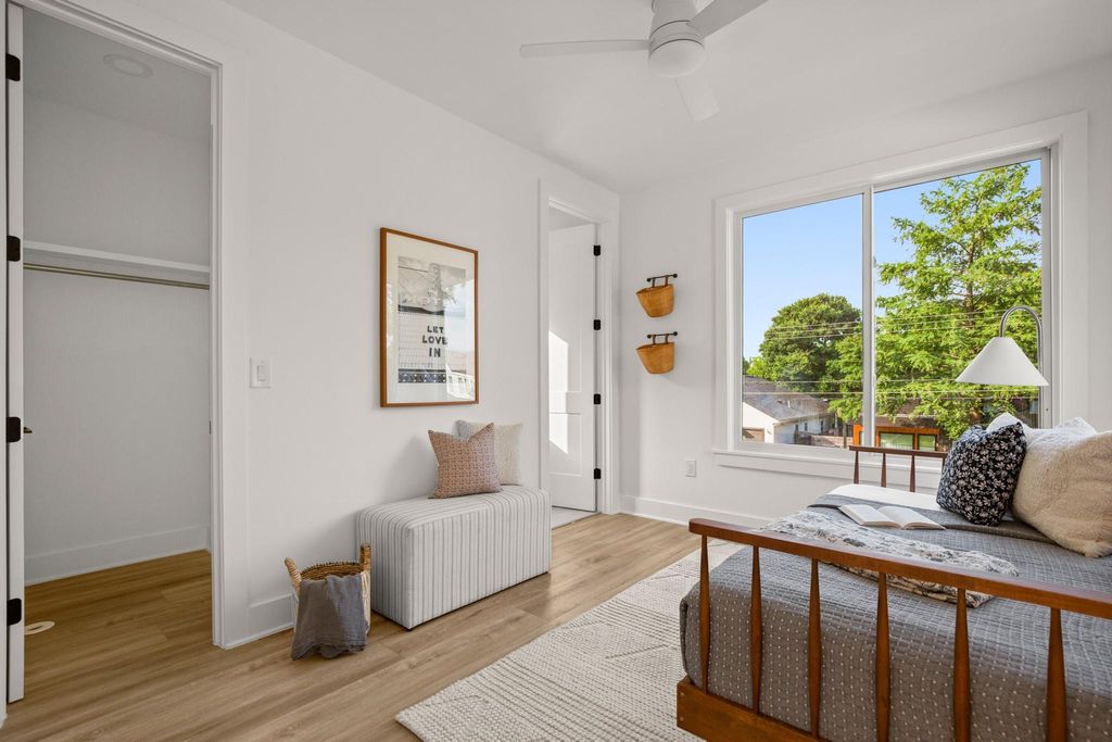 Nestled in the heart of Crestview, a picturesque neighborhood in North Central Austin. This delightful property is located on a peaceful street, just steps away from quaint cafes, lively bars, and a diverse array of restaurants, offering the perfect balance of comfort and convenience. As you enter the home, you'll be captivated by its elegant design and seamless functionality. The living area is bathed in natural light, thanks to expansive double-pane windows and multiple sliding glass doors that open to a spacious deck, creating an inviting indoor-outdoor living experience. The kitchen is a dream for any host, featuring top-tier appliances, gleaming white quartz countertops, a large island, ample soft-close cabinetry, a walk-in pantry, and a classic white porcelain farmhouse sink. The home offers 4 bedrooms, each with its own ensuite bathroom, providing a private retreat for everyone. The first-floor guest suite and an additional powder room add to the convenience. Upstairs, the primary bedroom is joined by two additional bedrooms and bathrooms, offering plenty of space for residents and guests alike. The main hallway leads to an upstairs balcony, perfect for relaxing and enjoying the evening views. The primary bedroom, located on the second floor, is a bright and airy space with vaulted ceilings and abundant natural light. Its ensuite bathroom offers a luxurious escape with a spacious walk-in shower and dual vanities.