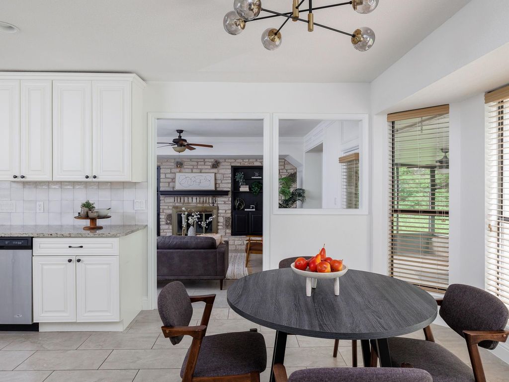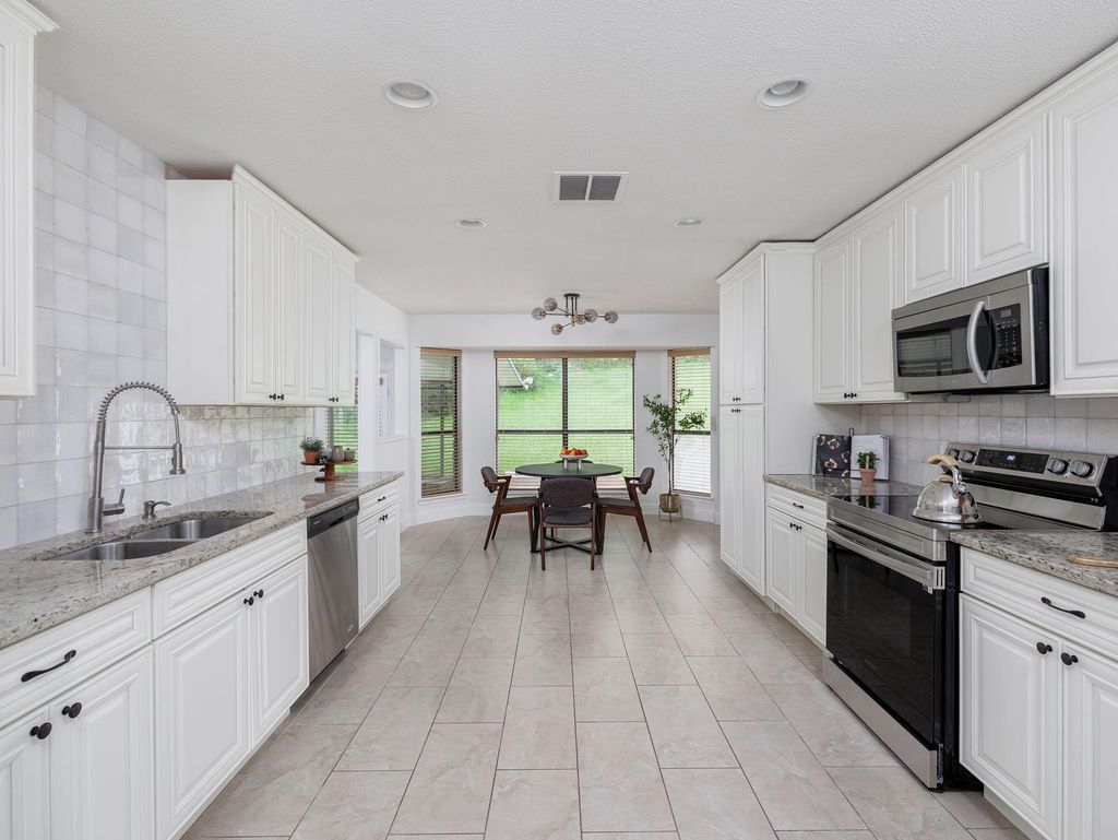 Elegant 4-bedroom, 3-bath residence nestled in a sought-after Northwest Austin location. The refined living room is anchored by a cozy fireplace, creating a warm yet sophisticated ambiance ideal for both everyday living and entertaining. Just across, the thoughtfully designed kitchen showcases stainless steel appliances, granite countertops, an oversized sink, and expansive white cabinetry offering a bright, airy feel. A charming breakfast area flows seamlessly to a private balcony, perfect for morning coffee or evening unwinding. The spacious primary suite serves as a serene retreat, featuring a spa-inspired bathroom with a stand-up shower, soaking tub, double vanities, and generous storage. Three additional bedrooms provide flexibility for guests, home office, or family living. A covered sunroom extends the living space, offering a tranquil indoor-outdoor setting year-round. Ideally positioned near top dining, shopping, scenic trails, and major thoroughfares. Zoned to highly rated Round Rock ISD schools, including Spicewood Elementary, Canyon Vista Middle, and Westwood High. A rare opportunity to enjoy timeless comfort, elevated design, and premier Austin living. Come make this home yours.