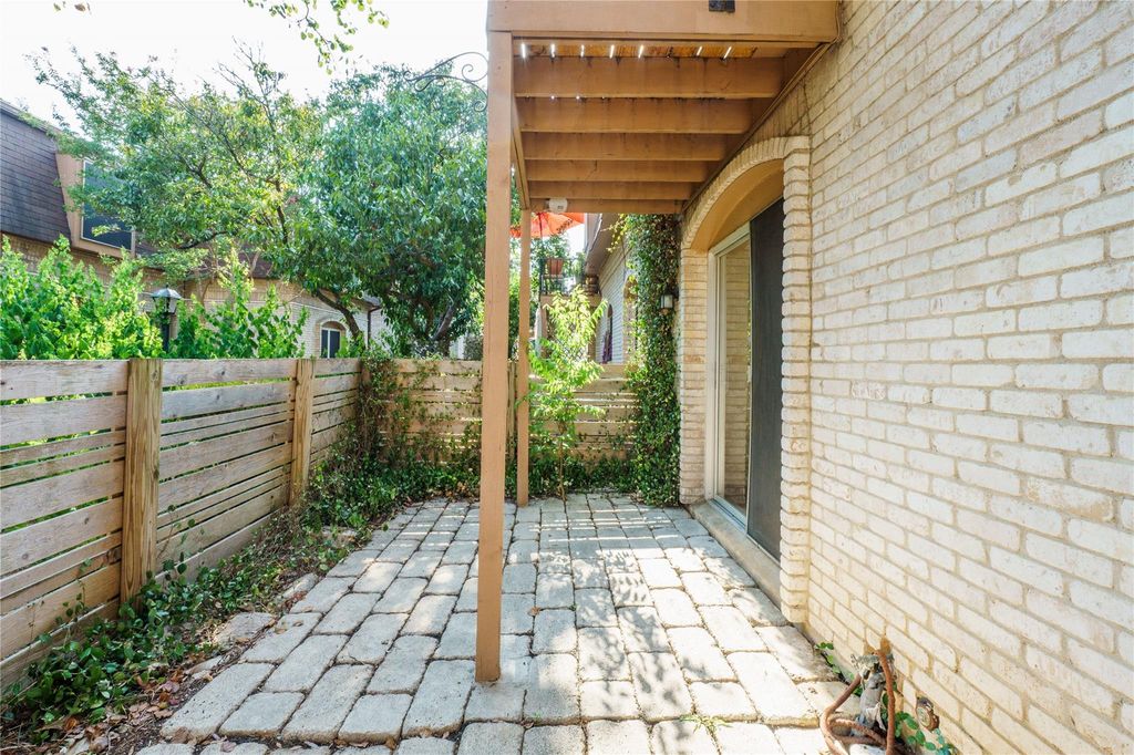 Clean move-in condition. Water, gas, hot water, and trash pick up are all paid for in regular HOA dues! Google Fiber installed. Nice size living room. Bedrooms almost equal size. Good for roommate setup. All tile floors. Recent HVAC replacement. Recent stainless steel appliances. Good size comfortable fenced back patio. Backs to courtyard and close to HOA gas grill. Ground level access, no steps. In center of complex, a very quiet location. Walkable/bikeable to groceries, movies, restaurants, bus. No W/D in unit, but community facilities are nearby and are FREE! Nice, tight knit community where you will know your neighbors.