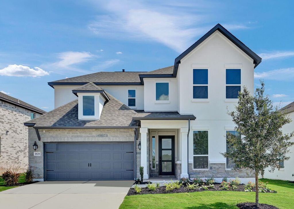New Construction - Ready Now! Built by Taylor Morrison, America's Most Trusted Homebuilder. Welcome to the Agave at 1828 Asti Lane in Travisso Capri Collection! This stunning new home greets you with a charming porch that leads to an elegant foyer and a grand winding staircase. To the side, you'll find a secondary bedroom suite, a powder room, and a versatile flex room, perfect for your needs. The open-concept design features a spacious great room, a gourmet kitchen, and a beautiful dining area, ideal for entertaining. Enjoy enchanting evenings on your extended covered patio, then retreat to the tranquil primary suite with a private ensuite and a generous walk-in closet. Upstairs, discover two additional bedrooms, two full bathrooms, a spacious loft, and a cozy media room. Experience luxury living in this prestigious Hill Country community, featuring a Tuscan-style clubhouse, pool, parks, and more, all while being just 30 miles from downtown Austin. With top-rated schools and quick access to H-E-B and Costco, your elevated lifestyle awaits! Additional Highlights Include: Gourmet kitchen, slide-in tub at primary bath, media room, and extended covered patio.