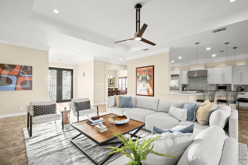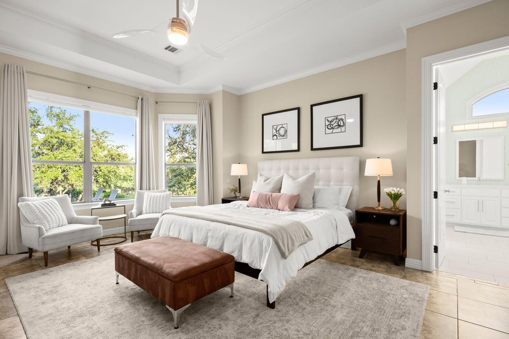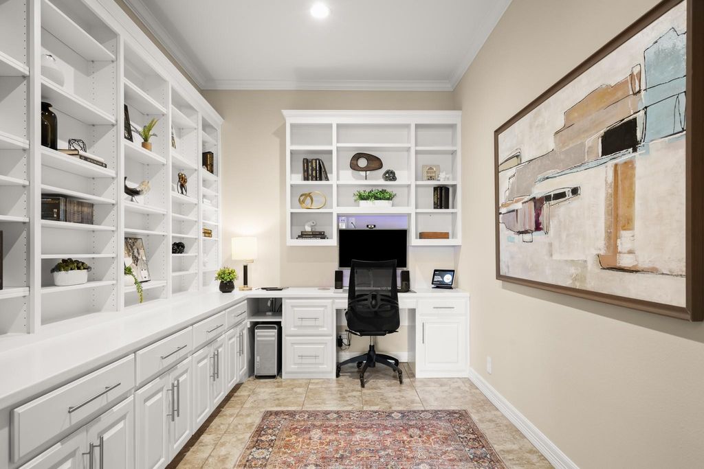 INTERIOR | Breakfast Bar, Built-in Features, Ceiling Fan(s), Crown Molding, Double Vanity, Eat-in Kitchen, Entrance Foyer, High Ceilings, High Speed Internet, Kitchen Island, Master Downstairs, Open Floorplan, Recessed Lighting, See Remarks, Smart Home, Smart Thermostat, Soaking Tub, Sound System, Storage, Walk-In Closet(s), Wired for Data, Wired for Sound |