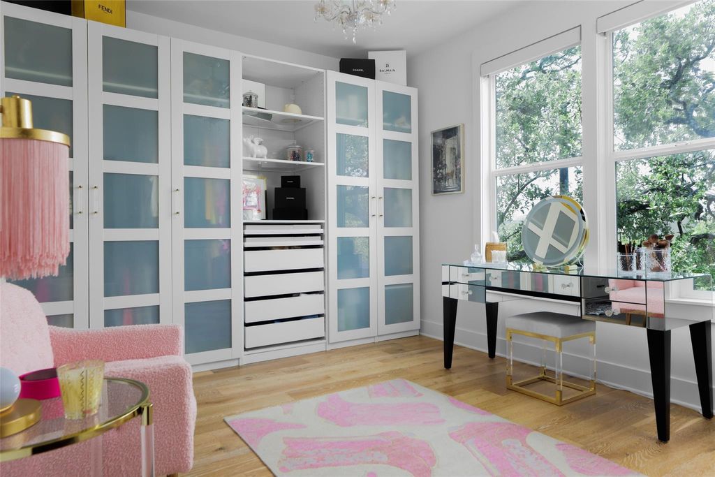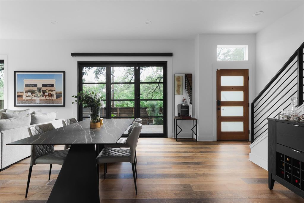 Set just south of Bouldin and moments from the best of South Congress and South Lamar, this chic, one-of-a-kind residence delivers privacy, design, and a seamless connection to the city. Mature oaks frame a tranquil setting, while a custom Cantera door opens to warm hardwood floors and an airy, open layout. Living, dining, and kitchen spaces flow effortlessly for entertaining and everyday ease, with expansive windows bathing the interiors in natural light. Custom automated solar shades provide comfort, privacy, and energy efficiency throughout. The primary suite functions as a retreat, complete with a custom closet designed for exceptional organization. Outdoors, a fully fenced yard creates a private sanctuary with thoughtful landscaping and a cozy fire pit. A complete irrigation system keeps the grounds lush year-round. From select vantage points, take in striking views of downtown Austin, a rare blend of serenity and urban energy. With an unbeatable location, sophisticated finishes, and true indoor-outdoor living, this home captures the essence of South Austin. Experience comfort, style, and unmistakable Austin character in one beautifully curated address.