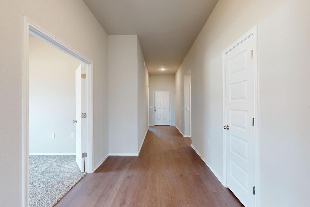As you enter the spacious foyer, you will find two private bedrooms and a full bathroom tucked off the entry. A third bedroom and en suite bath can be found further down the foyer. On the other side of the foyer is a spacious and bright study, an ideal space for everything from a quiet reading lounge to a perfect play room. Continue into the open kitchen, dining area, and family room. Enjoy impressive included features throughout the kitchen such as a large kitchen island, and spacious upper and lower cabinets. Enter a bright owner's suite that is tucked at the back of the home, privately off of the family room. The owner's bedroom features two large windows and an optional extended bay window for extra space and plenty of natural light. Through optional double doors, enter your owner's bath retreat, boasting a large walk-in shower.