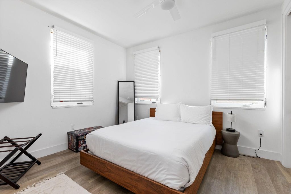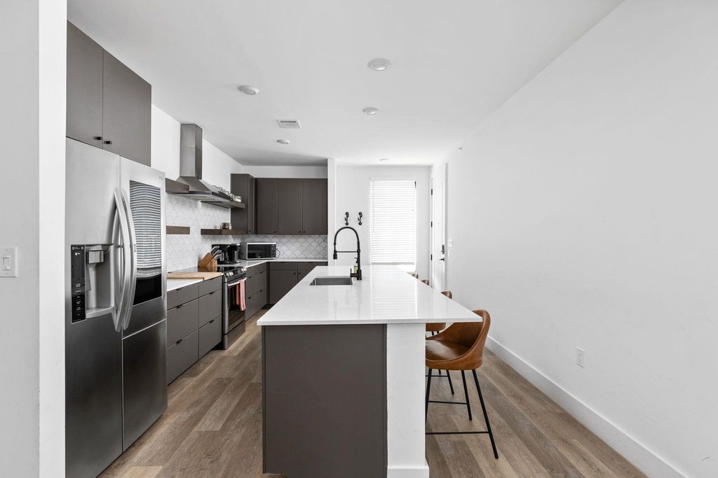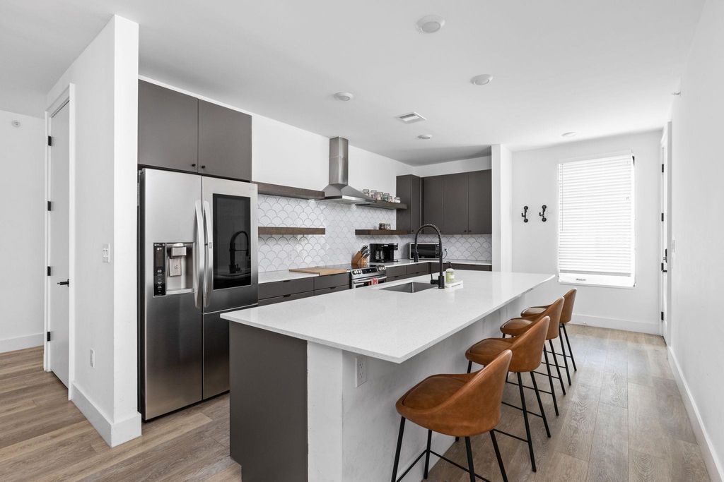 Welcome to Austin's vibrant East side with incredible STR history! This light-filled, design-forward 2-bedroom, 2-bath condo is situated in the heart of the East Side and is sure to impress. The stylish condo unit features gleaming wood floors, tall ceilings, and a thoughtfully designed open layout. The kitchen showcases stunning tile backsplash, floating wood shelving, quartz countertops, and an oversized island that seamlessly connects to the spacious living and dining areas. A primary suite that offers a walk-in shower, dual vanities, chic tile details, and abundant natural light awaits. What truly sets this home apart is its unbeatable walkability, just steps to some of Austin's best coffee shops, restaurants, breweries, and nightlife. With close proximity to the airport and downtown, this condo offers convenience and connectivity in one of the city's most exciting neighborhoods.