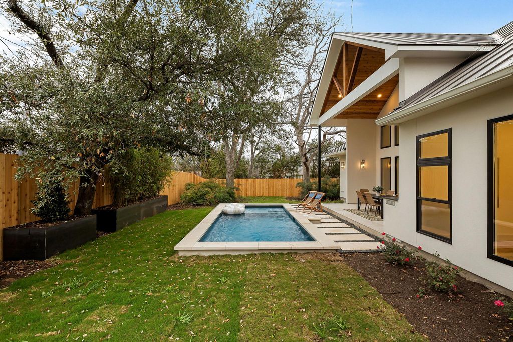 Nestled on a picturesque street in Allendale, 2607 Richcreek., is a stunning, brand-new, single-story home Built by Award Winning Rivendale Homes. Spanning over 3,200 sq ft, this thoughtfully designed residence features 4 bedrooms, 3 bathrooms, including a separate media room/ Office, and an exceptional resort-style backyard complete with a pool, water feature, outdoor living area, and grill station. With its functional layout, luxurious amenities, and high-end finishes, this home offers modern elegance and versatile living at its finest. Step into this spacious home where the expansive kitchen and living room offer stunning views of your elegant outdoor living space and sparkling pool. Perfect for relaxation and entertaining, the living area seamlessly connects to outdoor living. This home's kitchen is a chef's dream, featuring a spacious layout with a large central island that's perfect for meal prep, casual dining, or entertaining. Outfitted with high-end appliances, this kitchen combines functionality with luxury. This home features ensuite secondary bedrooms that provide comfort and privacy, along with a dedicated media room for movie nights or gaming. The luxurious primary suite features a spa-like bathroom with premium finishes, and a spacious walk-in closet. This home is designed for modern living, blending style, comfort, and functionality. Situated within walking distance of award-winning schools and offering easy access to both downtown Austin and The Domain, this home is nestled in a beautiful, tree-lined neighborhood. Enjoy the charm and convenience of this highly sought-after location.
