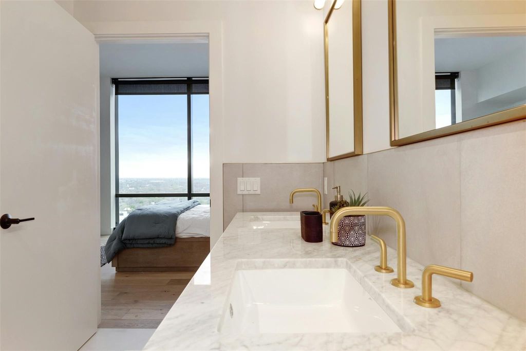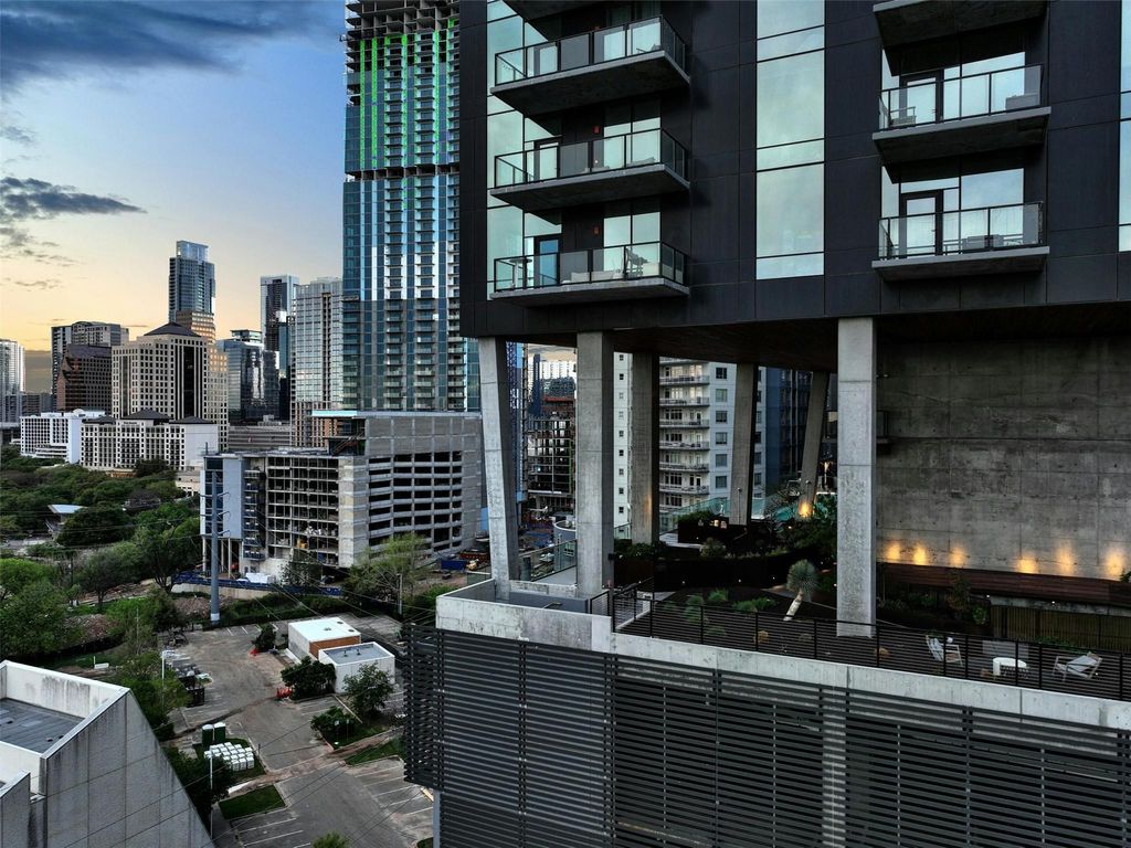 Downtown Living, Elevated. Perched above the dynamic Rainey Street District, this east-facing corner unit at 70 Rainey delivers a front-row seat to the energy of downtown Austin and the evolving East Austin skyline. Floor-to-ceiling windows frame the city's lights and morning sun, while European wide-plank oak floors, MARKZEFF-designed kitchen and baths, premium Miele appliances, and custom closets underscore a sophisticated vibe. Beyond the residence, over 31,000 square feet of amenities define life at 70 Rainey. The negative-edge pool, hidden plunge pool, and outdoor lounges capture sweeping views of Lady Bird Lake and the Austin skyline, while a gaming lawn, yoga deck, grilling station and private dog park offer leisure and lifestyle. Indoors, residents enjoy beautifully designed community lounges, catering kitchen, a private theater, and a state-of-the-art fitness center with 360-degree views across Austin. With 24-hour concierge, secured access, and gated garage parking, this address blends lock-and-leave ease with unmatched convenience. More than a residence, this is an opportunity to own in one of downtown's most distinctive high-rises"”where lifestyle, design, and location converge. Ask about including the furnishings for an easy move-in.
