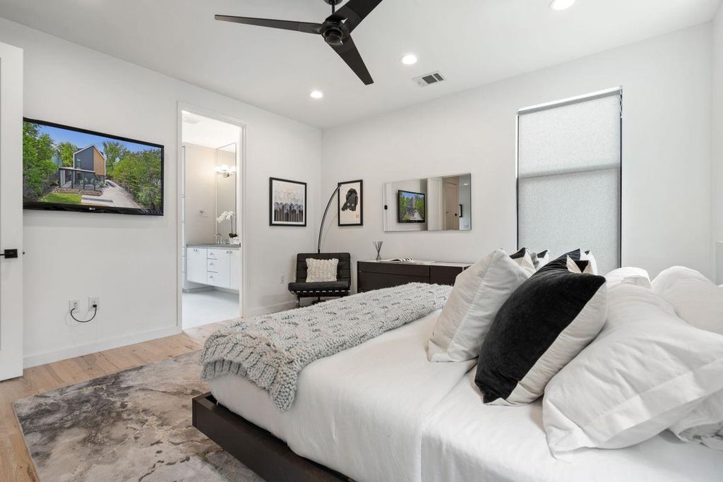 Contemporary and elegant home in the heart of Travis Heights! This 3-bedroom, 2.5-bath gem boasts a rooftop deck and dedicated parking for two. Experience an airy ambiance with abundant natural light, fine wood floors, artisan tilework, and chic Brizo fixtures. Savor culinary delights in the spacious kitchen equipped with premium Viking appliances. Located just minutes from Downtown and a stroll away from SoCo and Big Stacy Park. Proximity to St. Edward's, scenic lakes and trails, Zilker Park, and more enhances this home's allure. A must-see property!