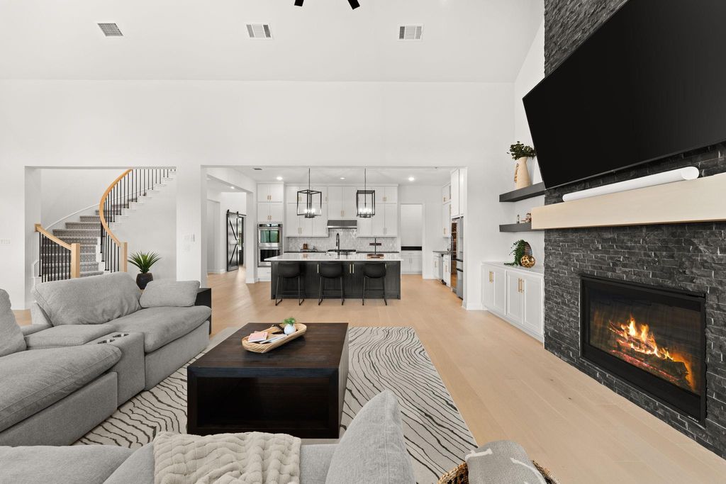 Built in 2023, this spacious two-story home in Provence offers 4,365 sq. ft. of thoughtfully designed living with Hill Country and greenbelt views. The open floor plan features an XL kitchen, dining, and living area that flows seamlessly to an oversized covered patio with a built-in outdoor grill"”ideal for everyday living and entertaining. The first floor includes hardwood flooring, high ceilings, abundant natural light, two bedrooms on the main level, and a dedicated office. The kitchen offers a large island, quartz counters, stainless steel appliances, gas cooktop, double ovens, and a walk-in pantry. The living room includes a gas fireplace and expansive windows overlooking the greenbelt. The large primary bedroom features high ceilings, two closets, a soaking tub, a walk-in shower, and direct access from the primary closet to the laundry room for added convenience. Upstairs offers flexible space with a large gameroom, movie room and an open office/craft area. Two additional bedrooms and full bathrooms complete the upper level. The backyard faces a greenbelt, creating a sense of privacy and connection to the Hill Country. A three-car garage completes the home. Located within the Provence community, residents enjoy access to walking trails, parks, pool, clubhouse, and playground. Zoned to Lake Travis ISD.