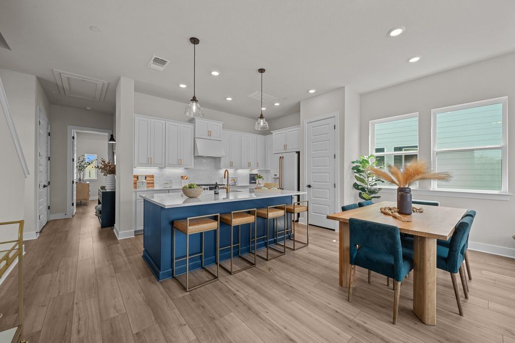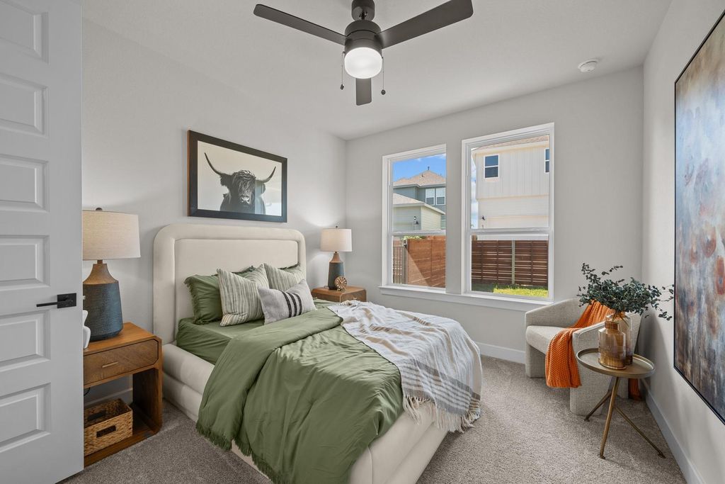 "The Bella" - Beauty and sophistication combined with exceptional craftmanship and genuine comforts make eac;h day delightful, provide endless possibilites for effortless living and privacy. Nicely appointed with high-end finishes, this home is a former Model Home in the Twilight of Goodnight Ranch - now available for immediate move-in. Natural light and boundless interior design possibilities create a picture-perfect setting for the cherished memories you'll build in the open-concept gathering spaces of this home. Located on the 2nd floor, the streamlined kitchen provides an easy culinary layout for the resident chef while granting a delightful view of the sunny family room and dining area. The corner homesite features additional windows with greenbelt and spectacular sunset views. A downstairs guest bedroom and full bathroom provide ample privacy for guests or growing residents. The study provides the versatility for a home office or a special-purpose room of your own design. Escape to your superb Owner's Retreat, which includes an en suite bathroom with luxurious spa shower. Create the perfect media or game room in the 3rd floor retreat equipped with an open living space, separate bedroom and full bath. Contact the David Weekley Homes Team in The Twilight at Goodnight Ranch to build your future in this beautiful new home for sale in Austin, Texas! Our EnergySaverâ„¢ Homes offer peace of mind knowing your new home in Austin is minimizing your environmental footprint while saving energy. A David Weekley EnergySaver home in Austin averages a 60 on the HERS Index. Square Footage is an estimate only; actual construction may vary.