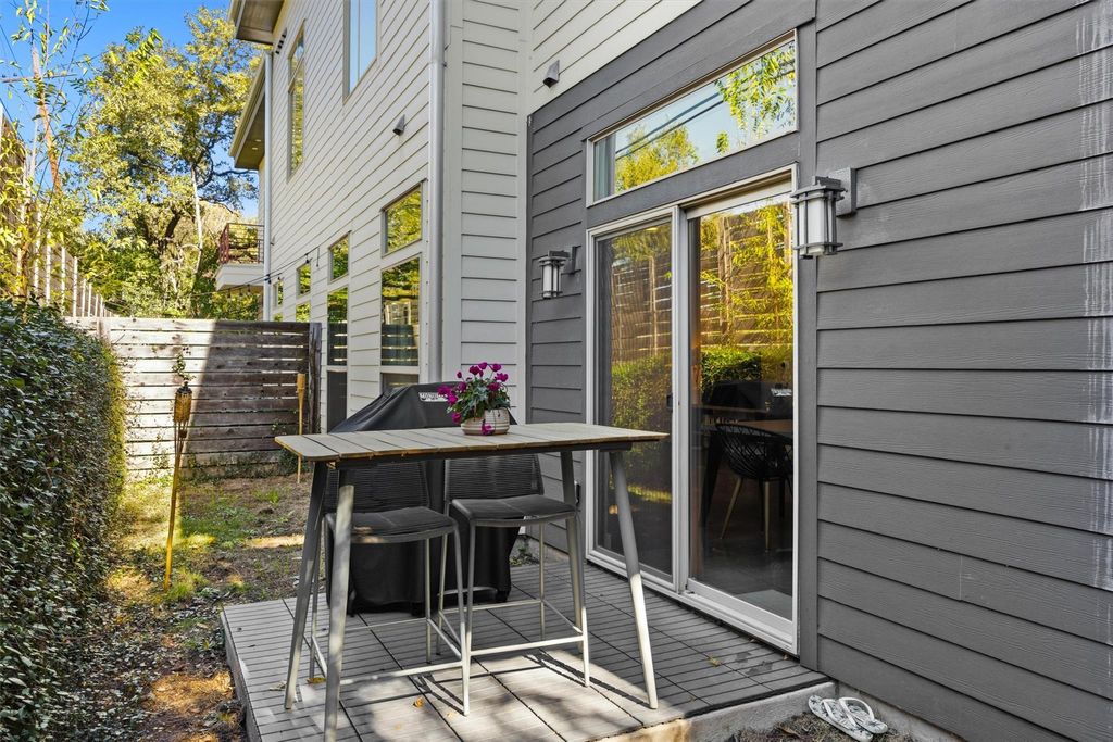 A stunning contemporary two-story condo tucked into a private corner of an intimate eight-unit community, offering one of the largest yards in the complex. Built in 2016, this home features 10-foot ceilings, an open floor plan, and energy-efficient construction throughout. The chef-inspired kitchen showcases Energy Star appliances, granite countertops, and dove-tailed soft-close cabinetry. Each of the three bedrooms includes its own ensuite bath, while the primary suite features a double vanity, garden tub, walk-in shower, and private balcony. Complete with both a garage and covered carport, this home delivers modern living at its finest.
